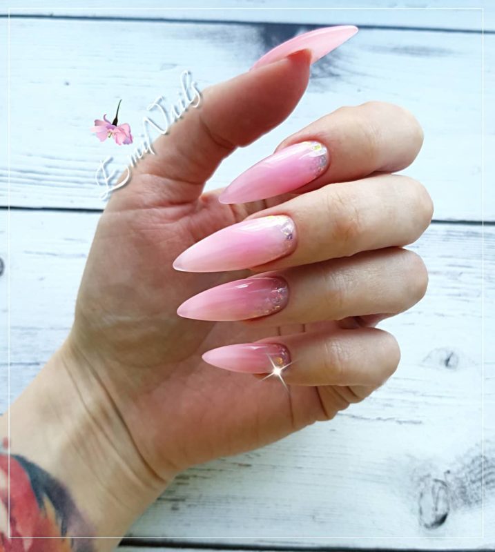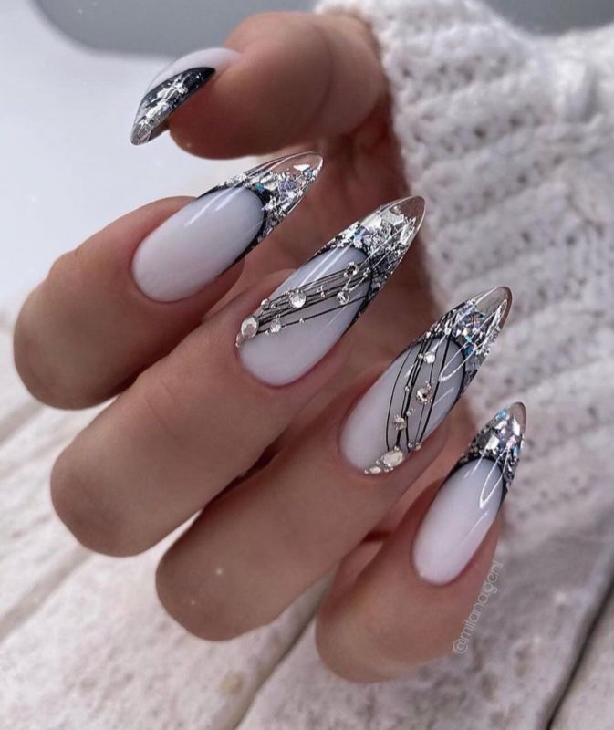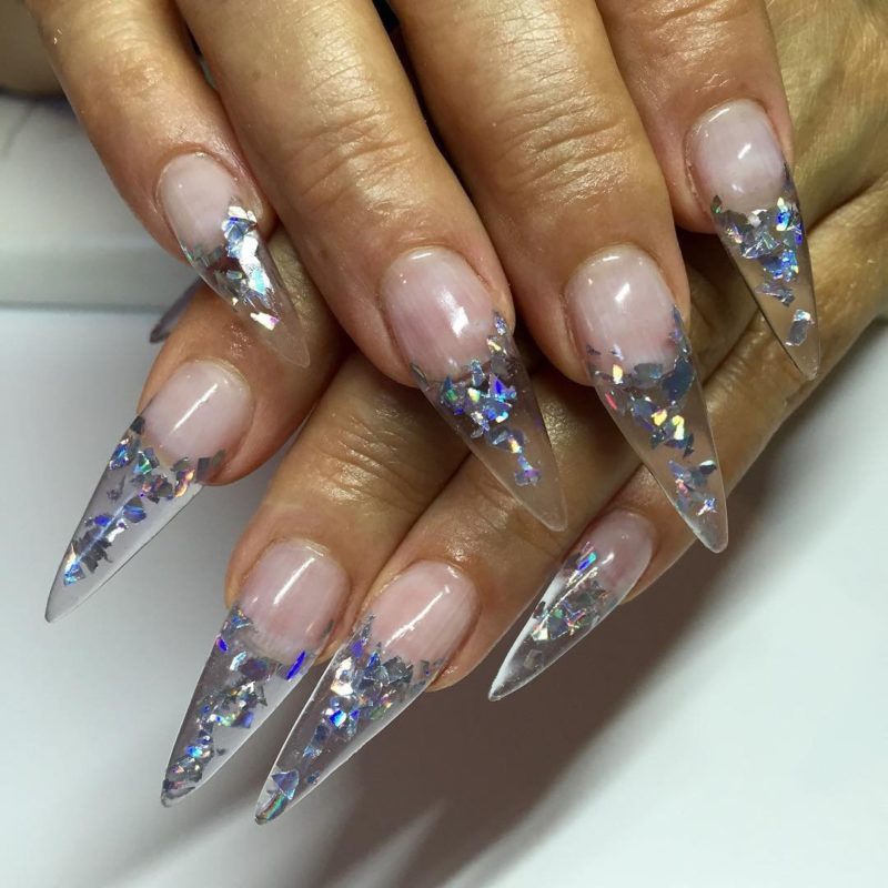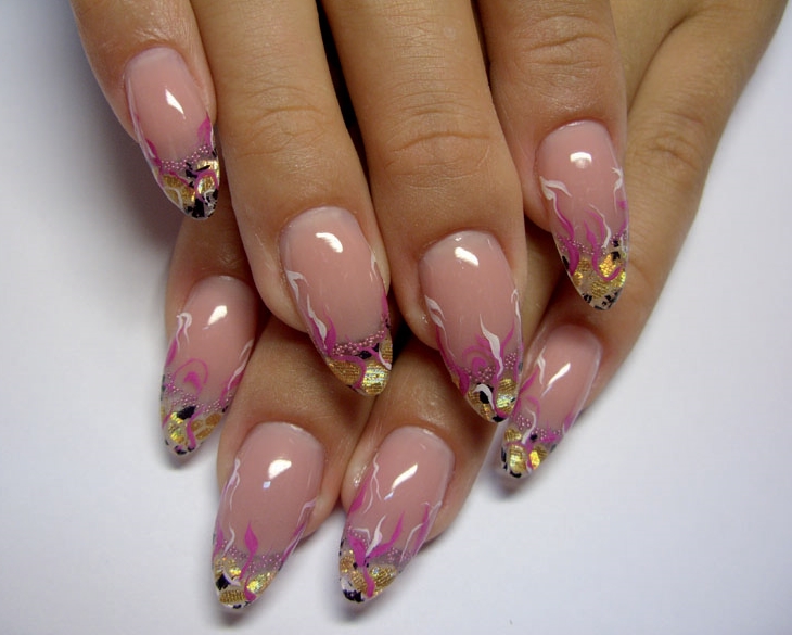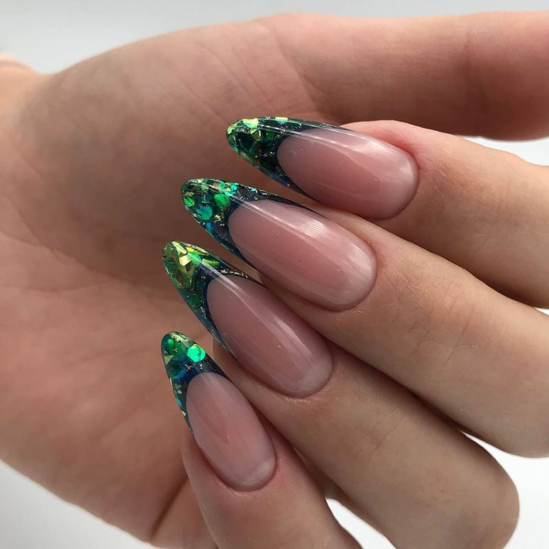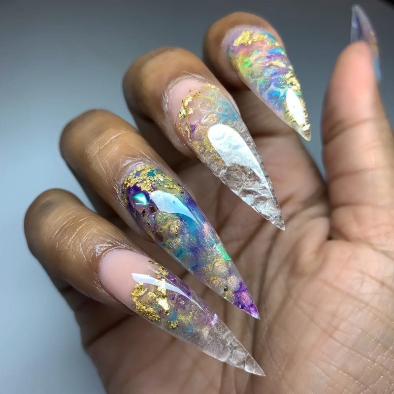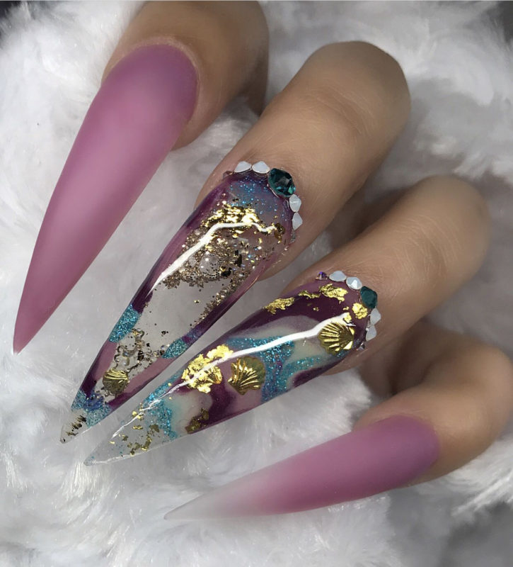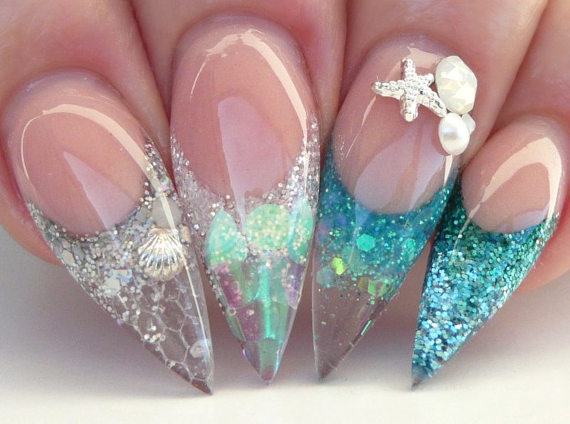 Ноготки с острым концом — идеальная база для разработки аквариумного маникюра. На такой форме будет выгодно смотреться любая интерпретация этого вида дизайна, если она выполнена технически правильно.