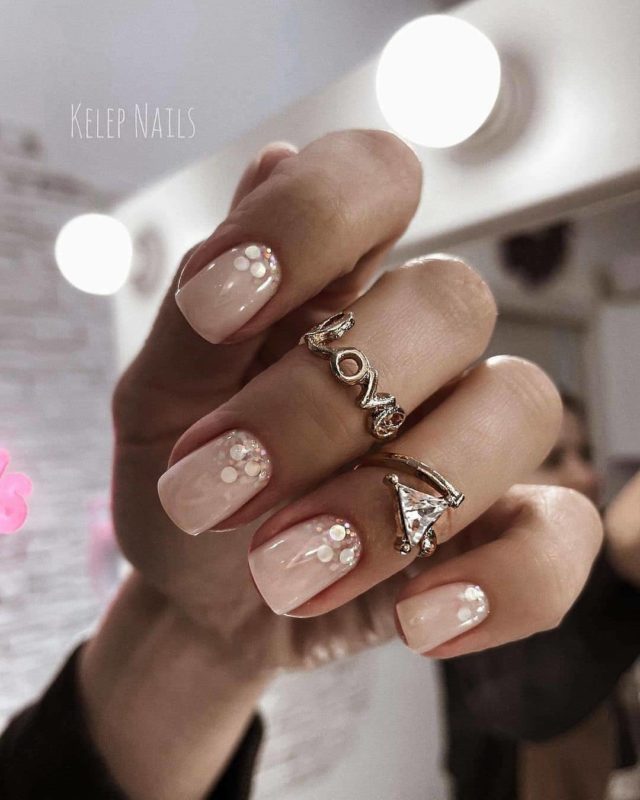 Нужно понимать, что аквариумный маникюр визуально уменьшает длину и добавляет объема. Так что на совсем коротких ноготках, обрезанных «под корень», всё же небольшое наращивание сделать стоит.