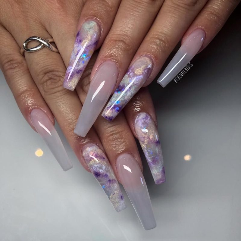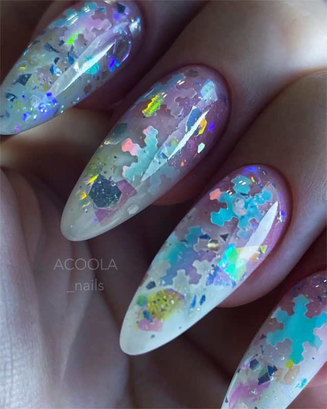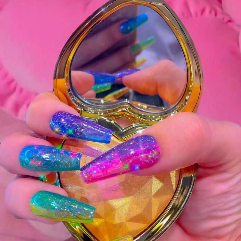 Нововведение, которое приобрело популярность за последние сезоны — это аквариумный маникюр. Он цепляет неординарностью и разнообразием, благодаря чему каждая найдёт что-то для себя в этом стиле.