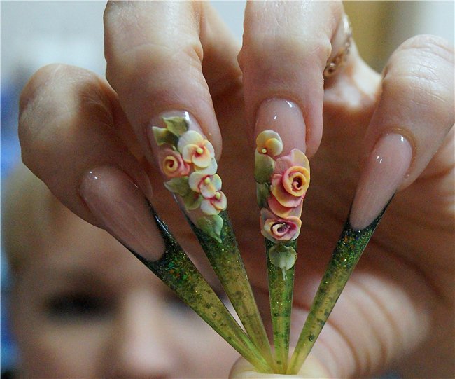 - Техника выполнения на нарощенных ногтях