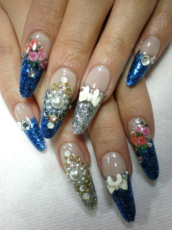 Неплохо смотрятся картинки, которые при правильном нанесении выглядят как 3D, интересным решением будут кружева или фольга. Не стоит забывать и об элементах, таких как бусинки или бисер.