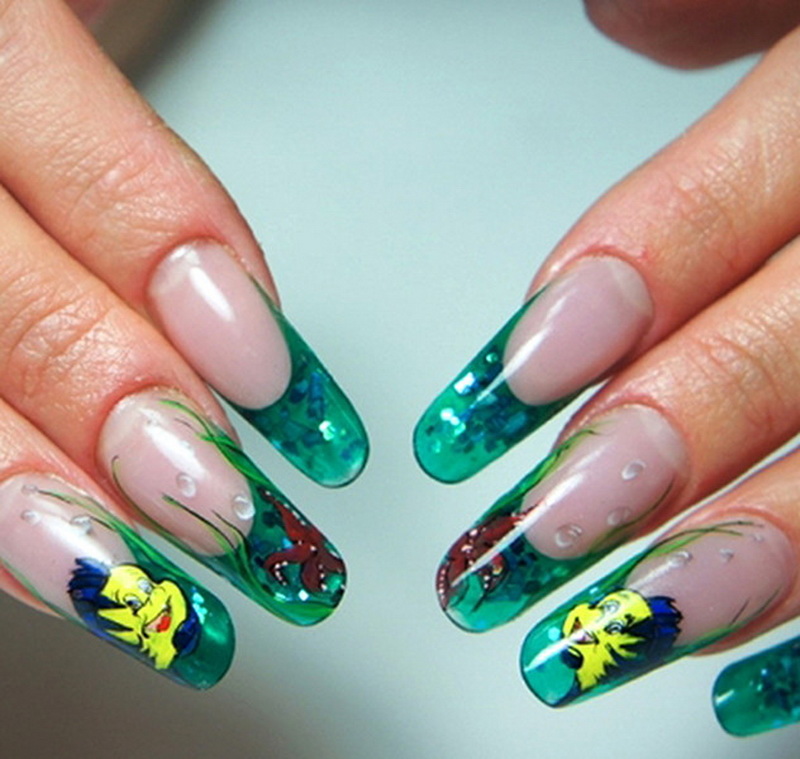 Декорировать ногтевую пластину, чтобы получить эффект аквариума одновременно легко и, с другой стороны, сложно. Украшениями послужит всё, к чему приведёт фантазия, к примеру, дизайн ногтей рыбки.