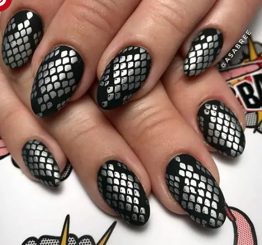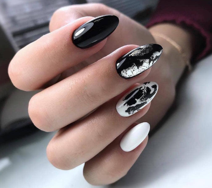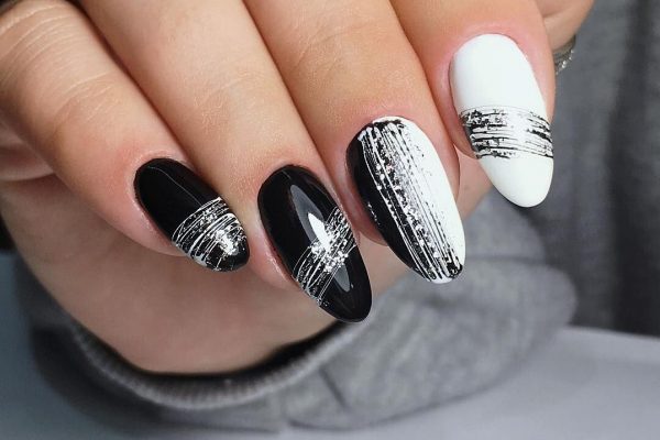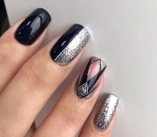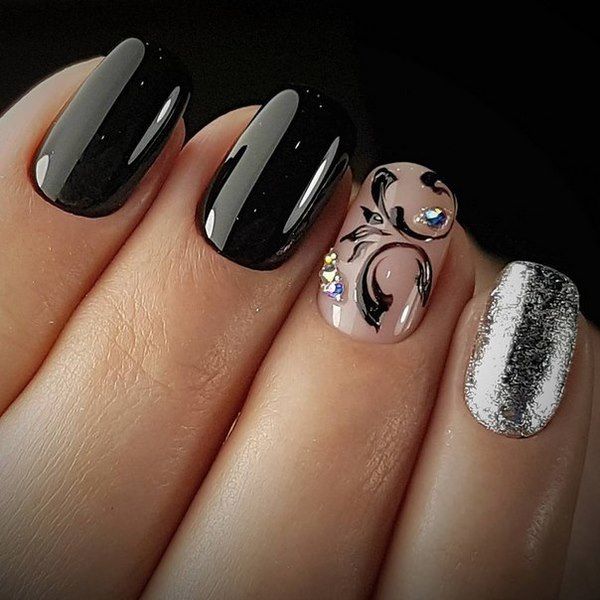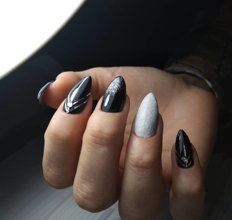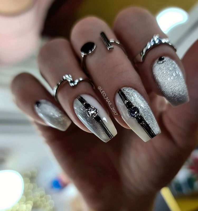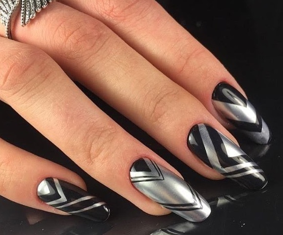 Черно-серебряный маникюр подойдет смелым и уверенным девушкам — он будет привлекать взгляды окружающих.