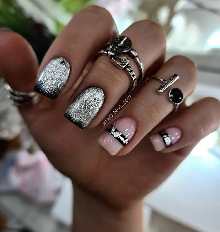 - Модные варианты черно-серебристого маникюра 2026 — фото