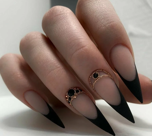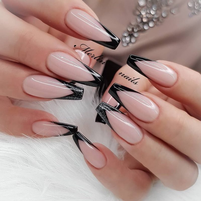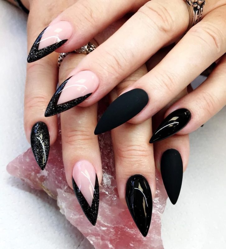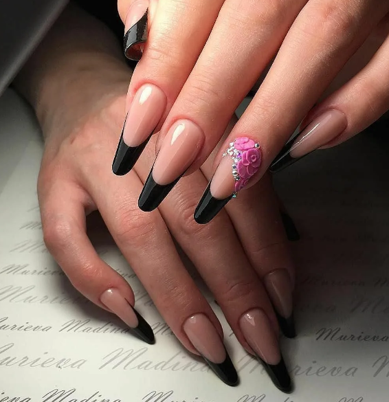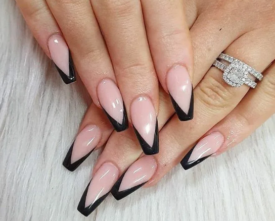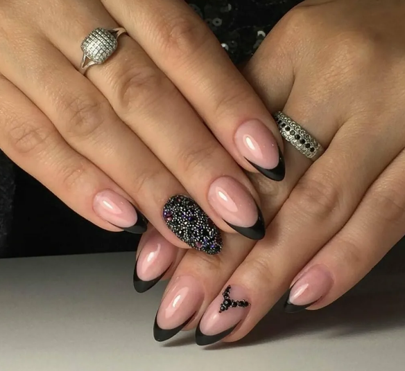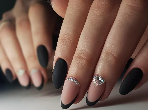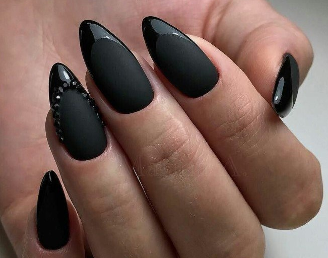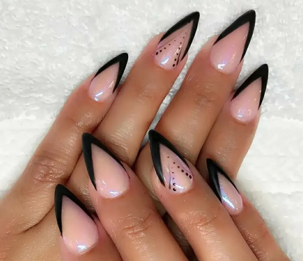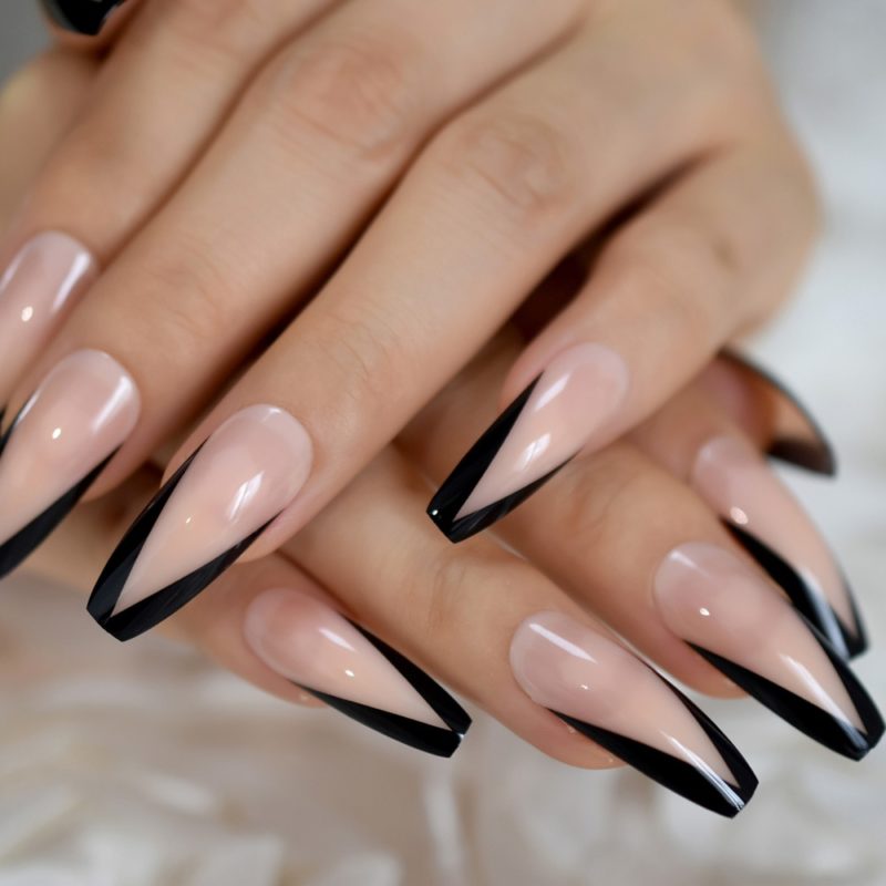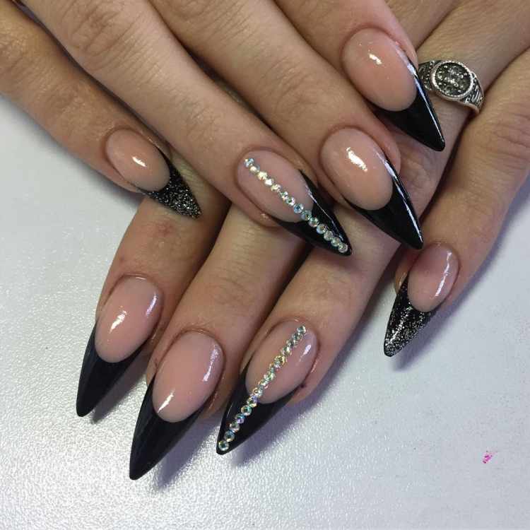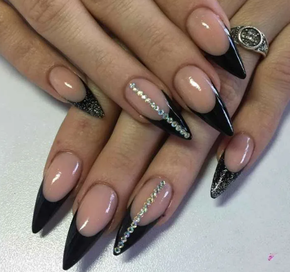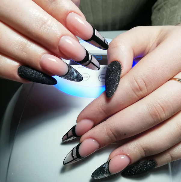 Черный модный френч на острых ногтях