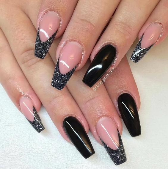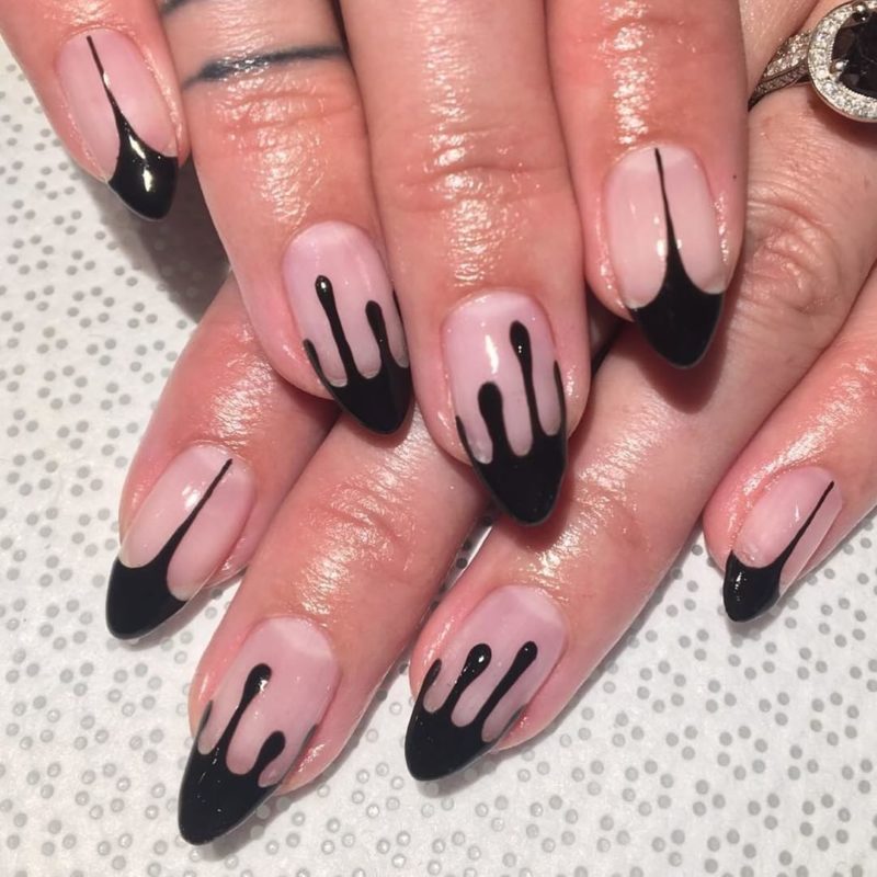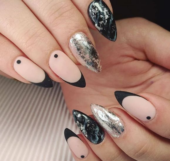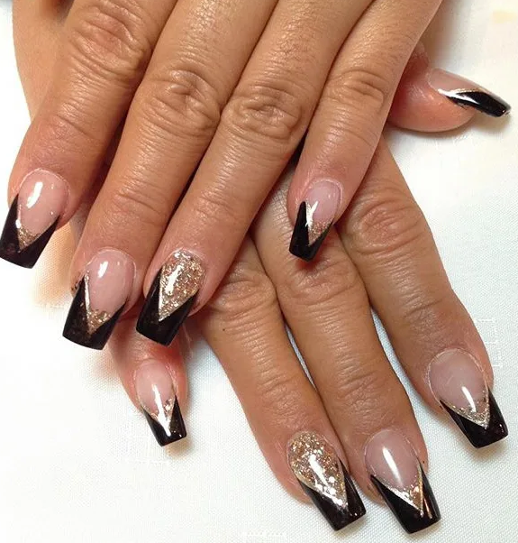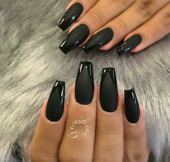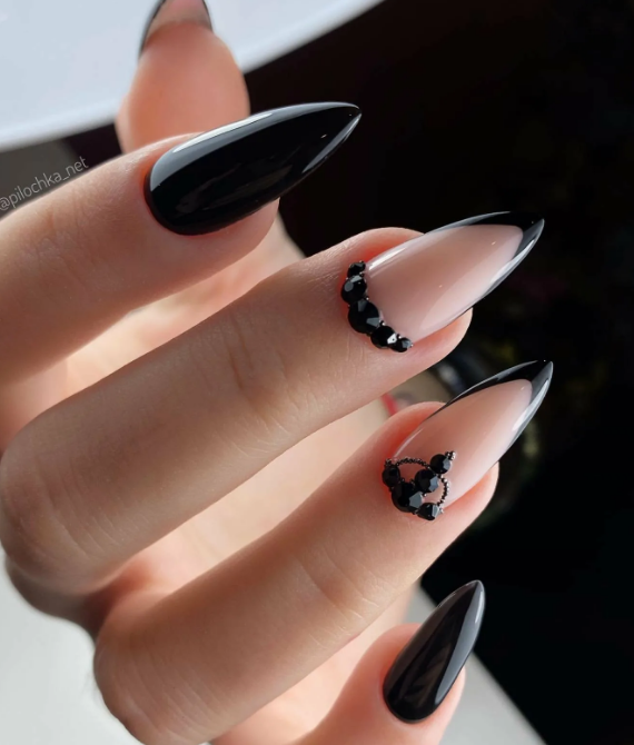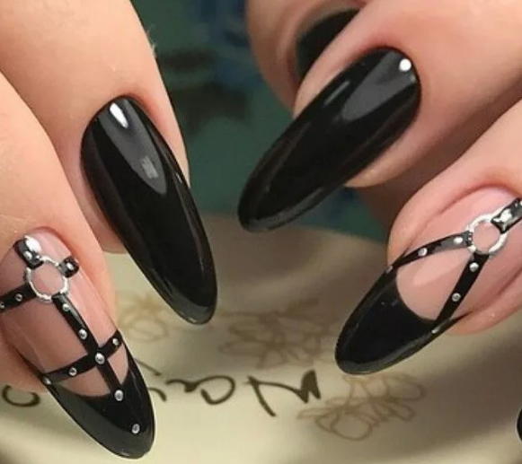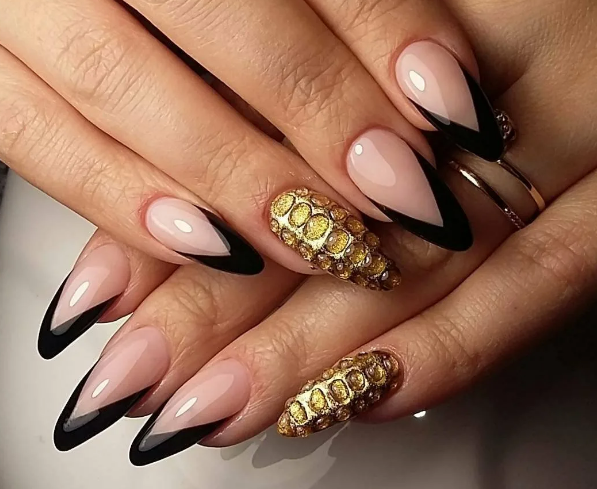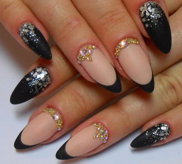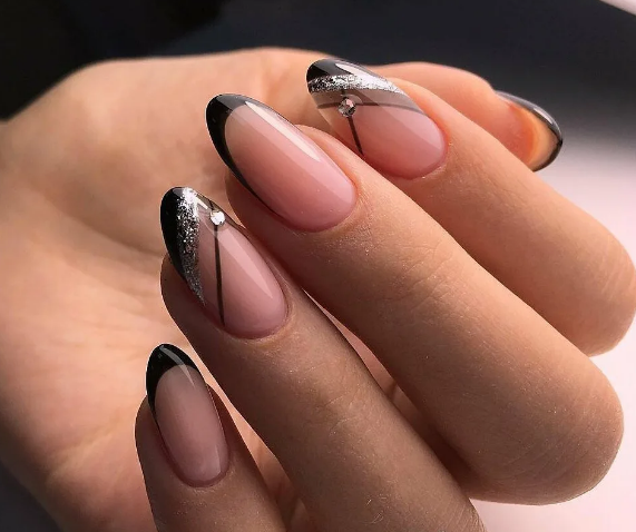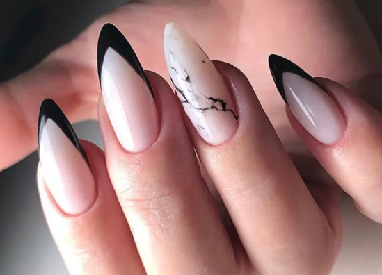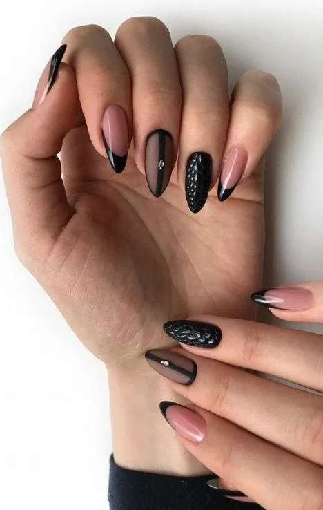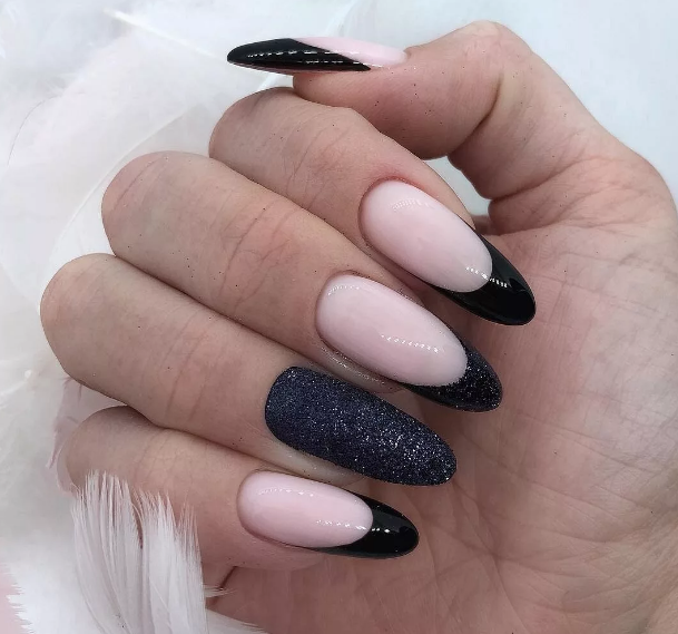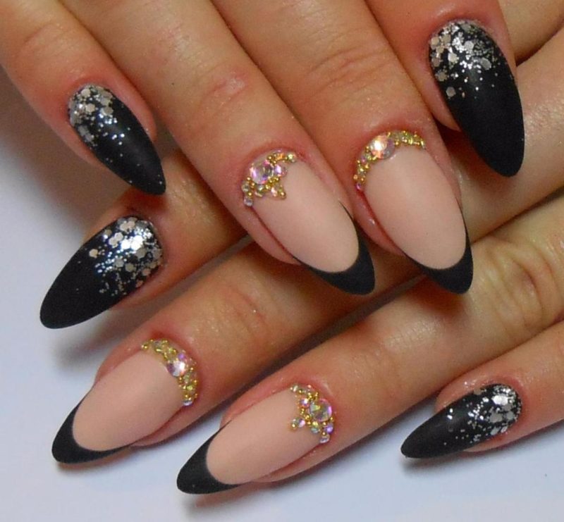 Черный модный френч на острых ногтях