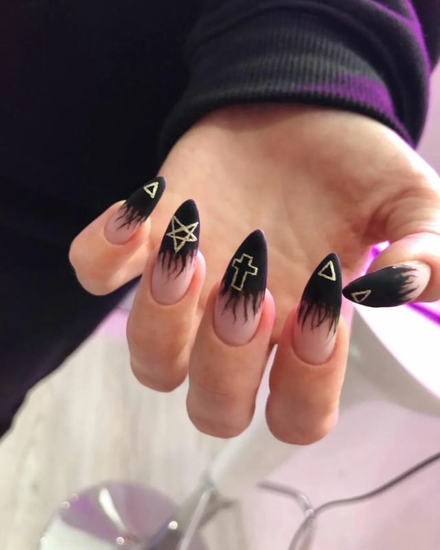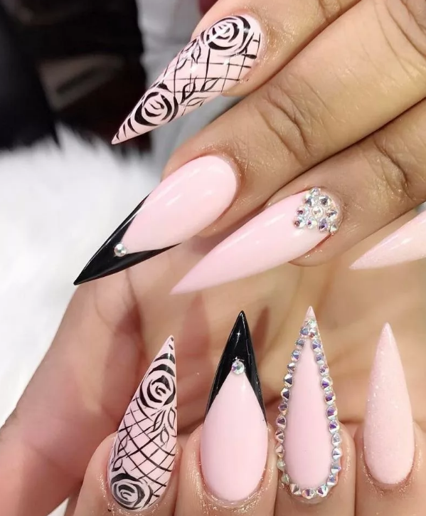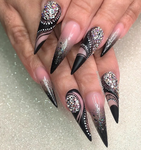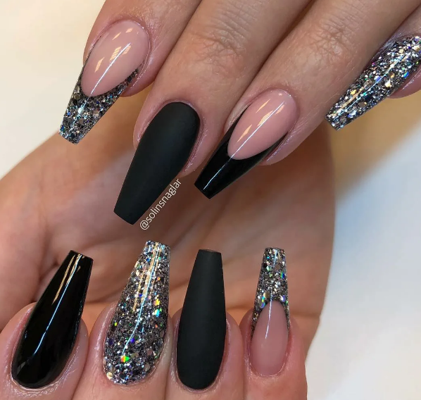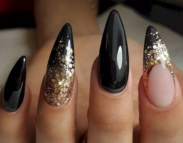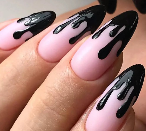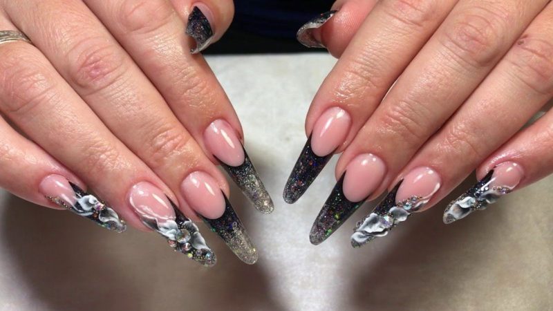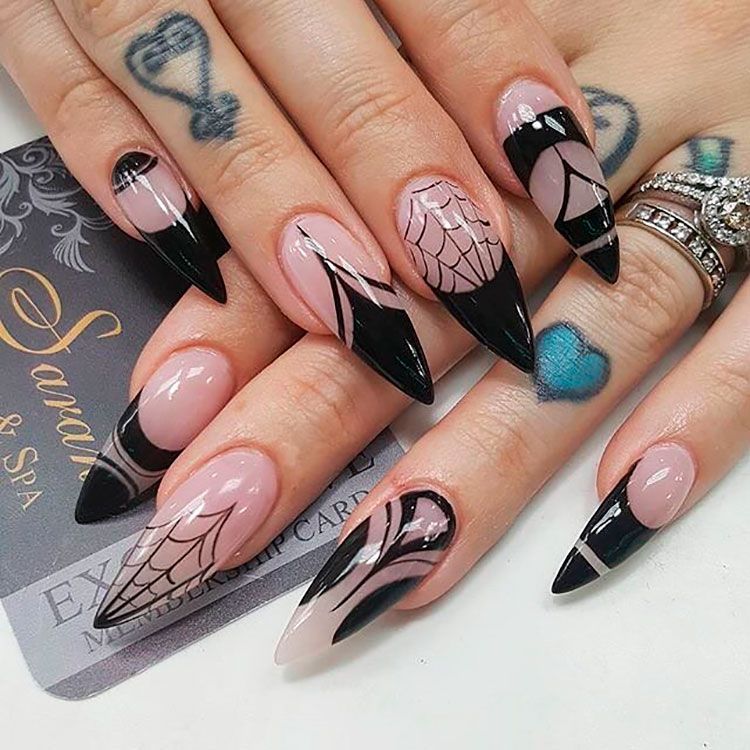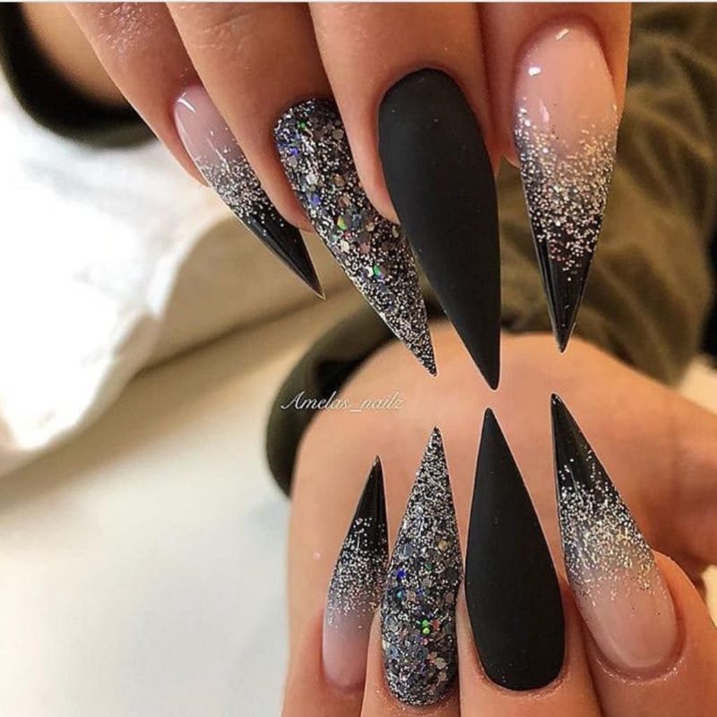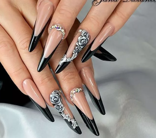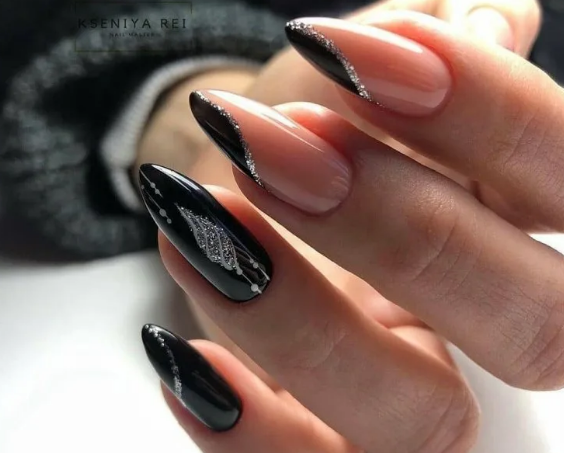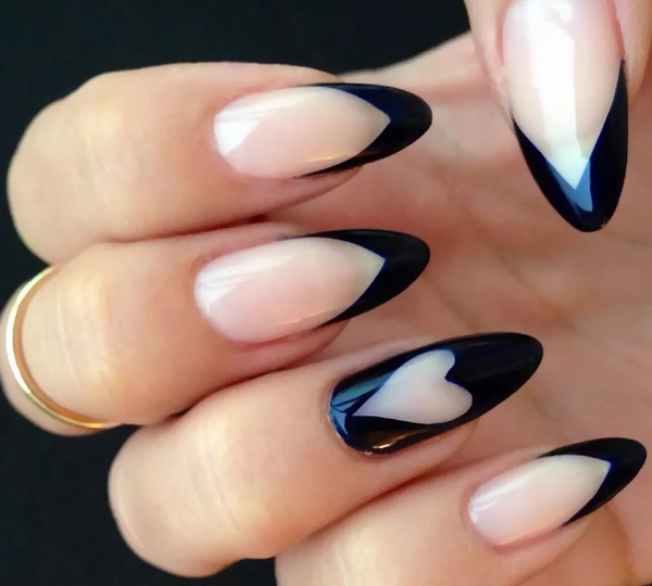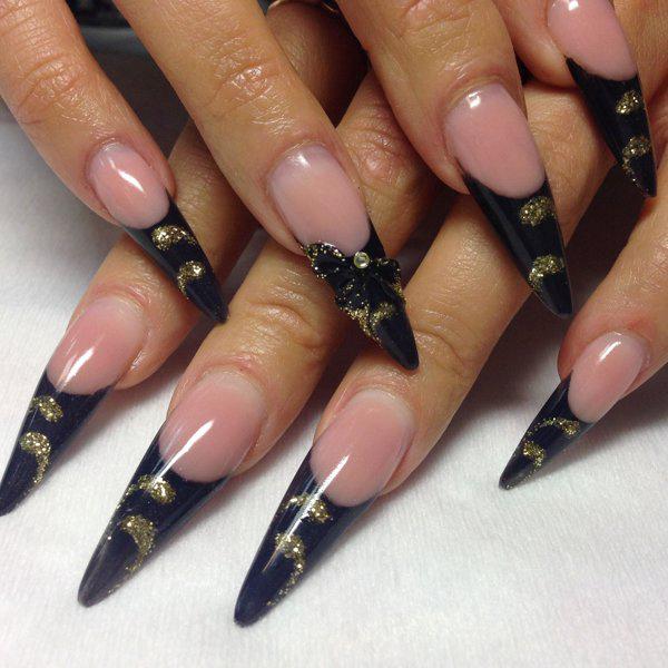 Черный модный френч на острых ногтях