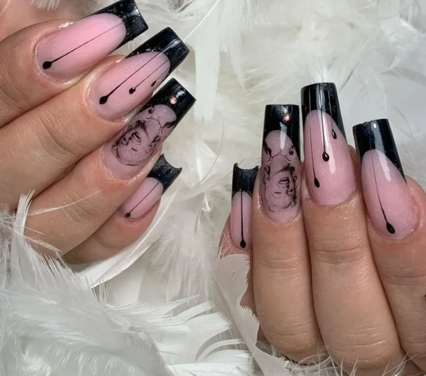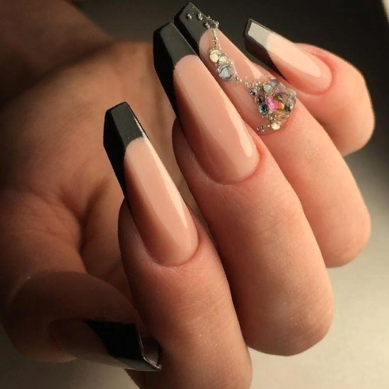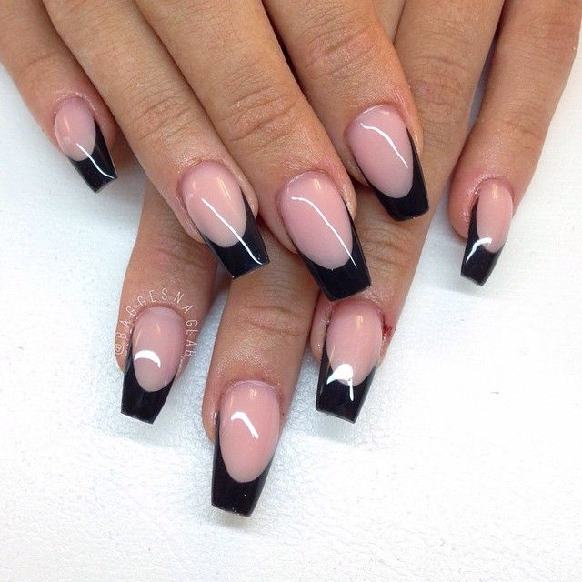 - Черный френч на длинные ногти