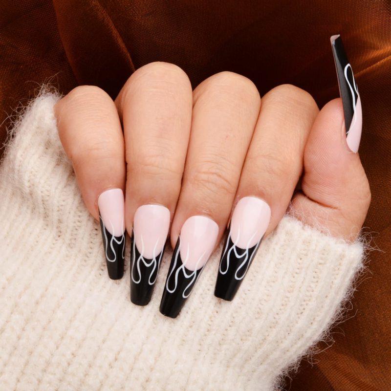 Черный френч на длинные ногти