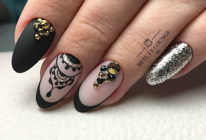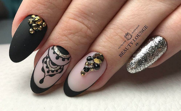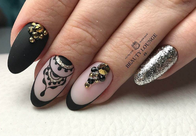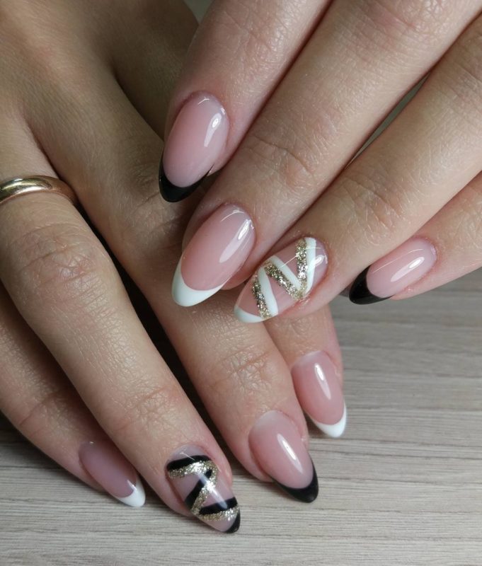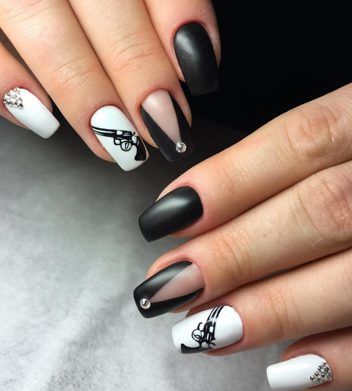 Это, наверное, самая элегантная комбинация в нейл арте. Такой вариант подойдет для взрослых и стильных дам, будет отлично сочетаться с любой одеждой — от офисного костюма до джинсов и кроссовок.