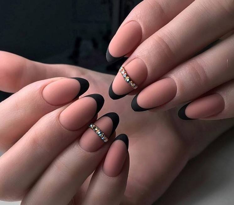 - Черный френч с лунным маникюром