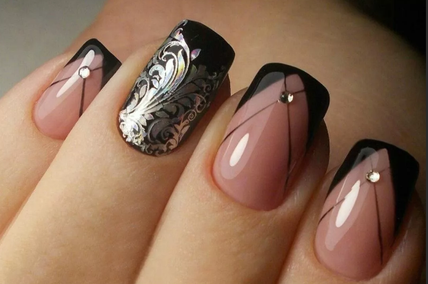 Френч черный — варианты дизайна
