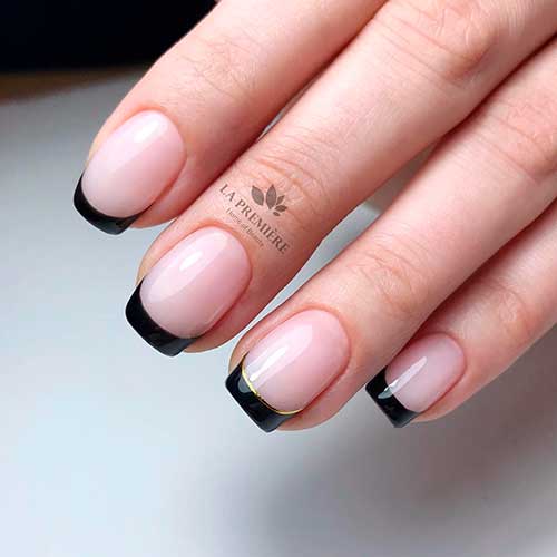 - Черный френч на короткие ногти
