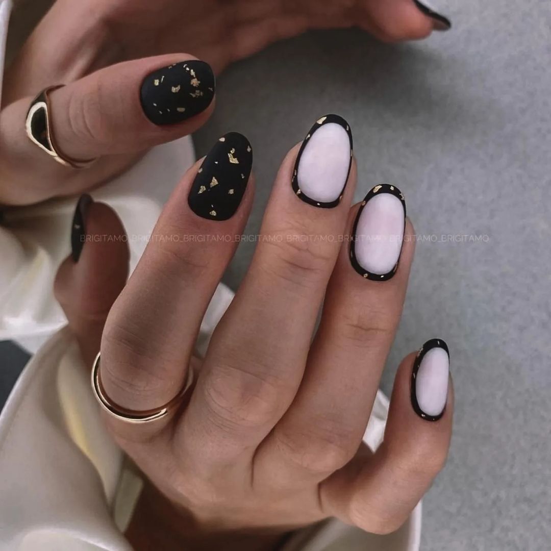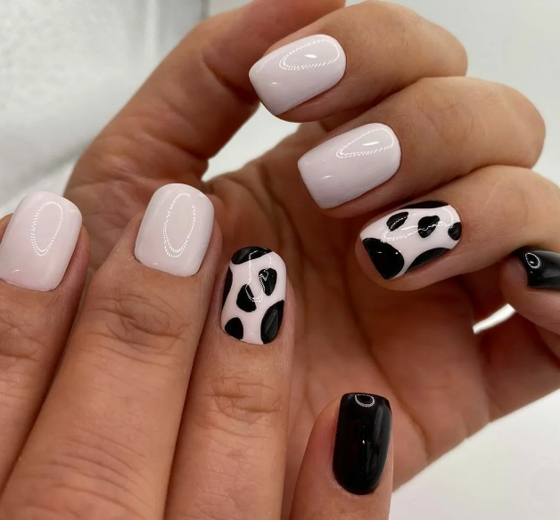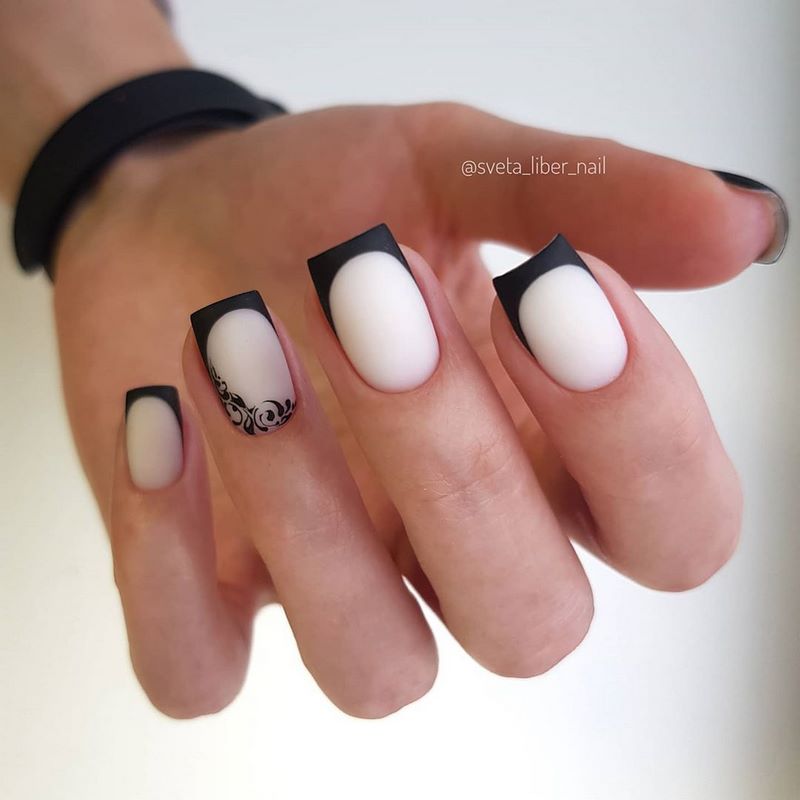 Что говорить — это классическое сочетание. Если вы не знаете, как разбавить мрачность черного, просто добавьте белые акценты. Кстати, в этом сезоне стоит обратить внимание не просто на густые белые оттенки, выбирайте молочные. Они придадут загадочности и укажут на то, что обладательница маникюра следит за трендами.