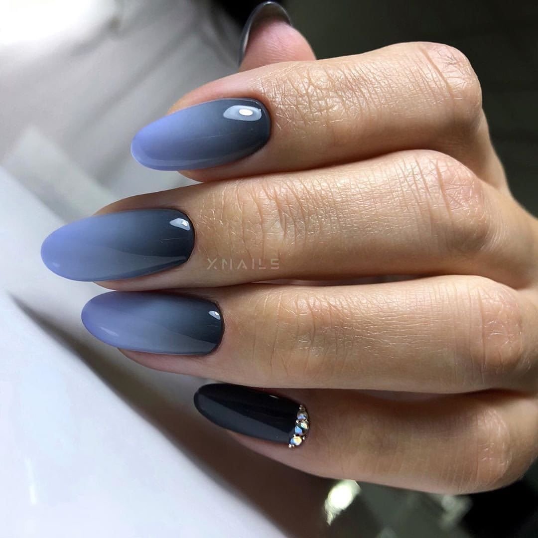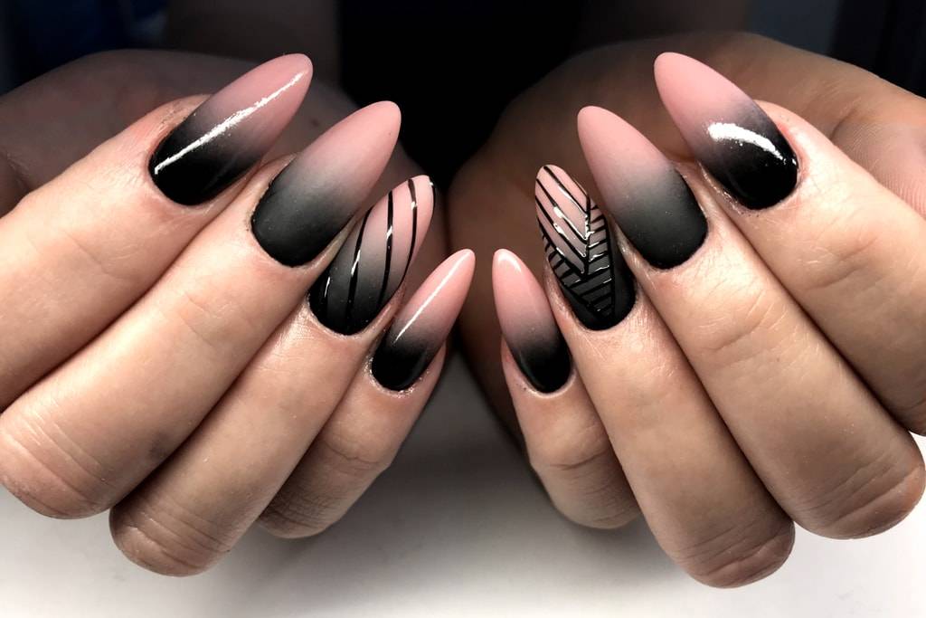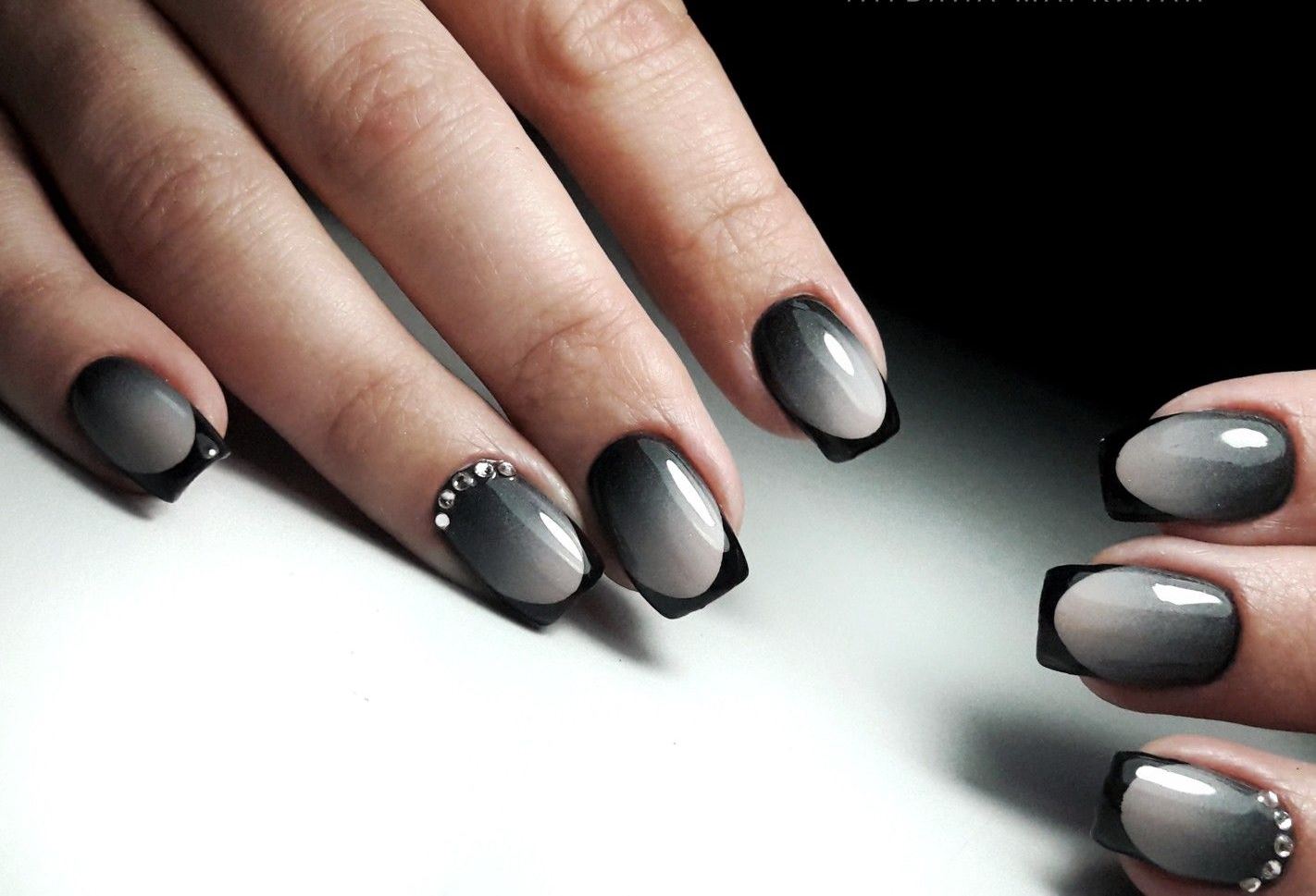 Удивительно красивый эффект градиента или омбре можно добиться с помощью губки, кисти (растяжка цвета) или аэрографа. последний вариант более предпочтителен, если вы делаете маникюр в салоне. И, конечно,очень стильно смотрится вариант с черным цветом. Чаще всего мастера предпочитают делать черно-красный, черно-синий, черно-серый дизайны в этой технике. Но с черным цветом можно сочетать абсолютно любой оттенок, который подходит вам по стилю. Ведь «омбре» с французского как раз и переводится как «затемнение».