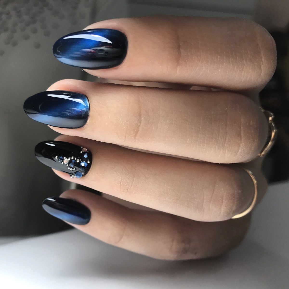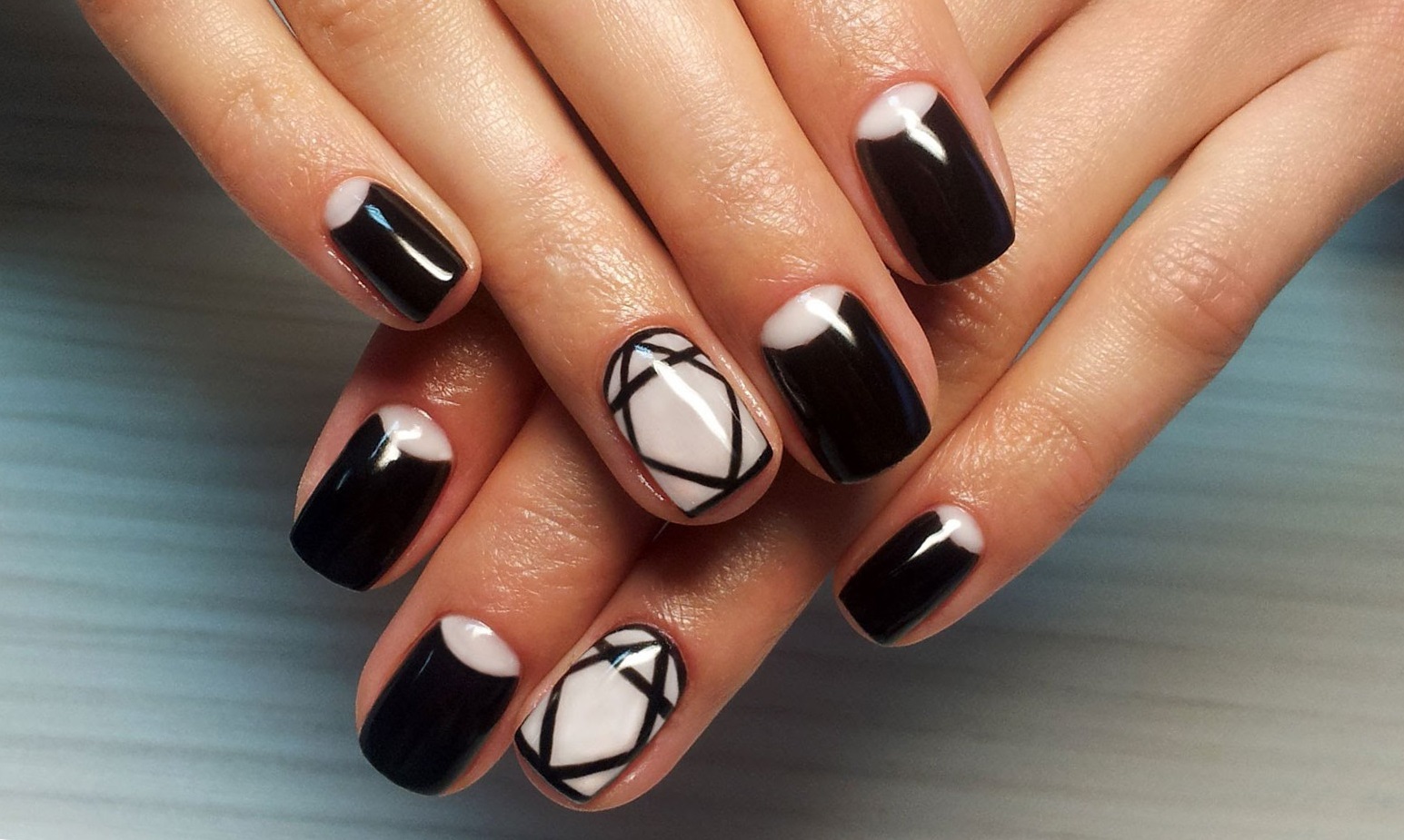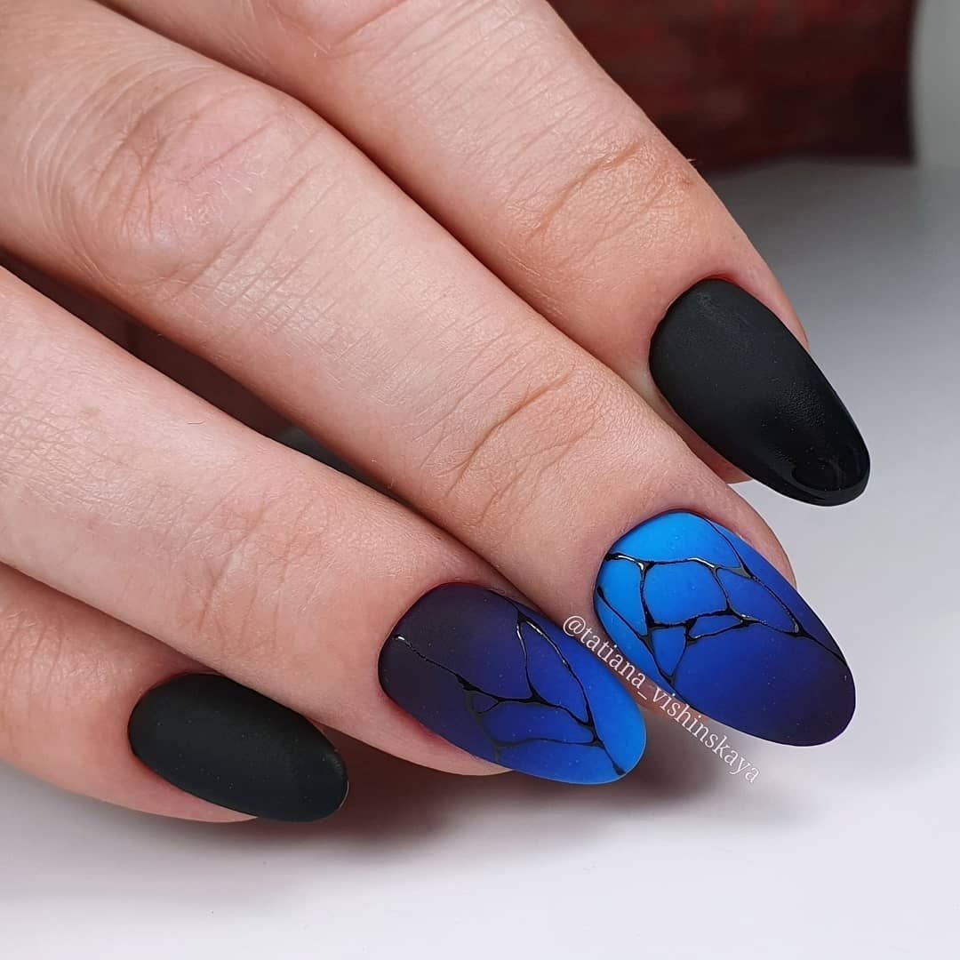Если вы решите добавить в черный маникюр оттенок из синей палитры, выбирайте светлые тона. Иначе ваш дизайн будет слишком мрачным. обратите внимание на свой цветотип и оттенок кожи. Правильный оттенок голубого будет удачно гармонировать с кожей и сделает руки более изящными.