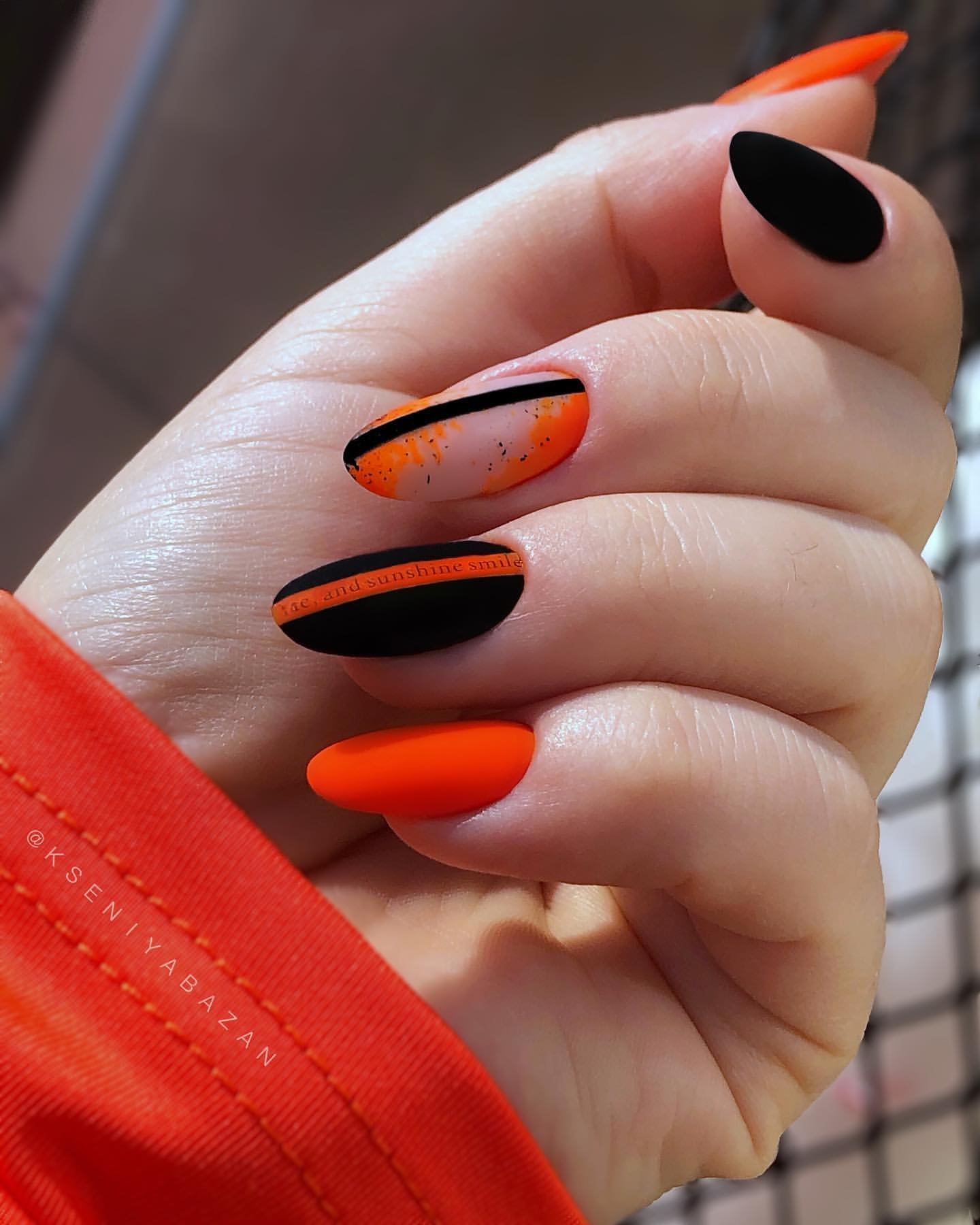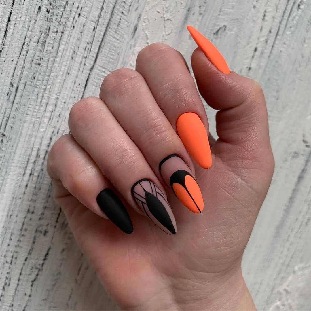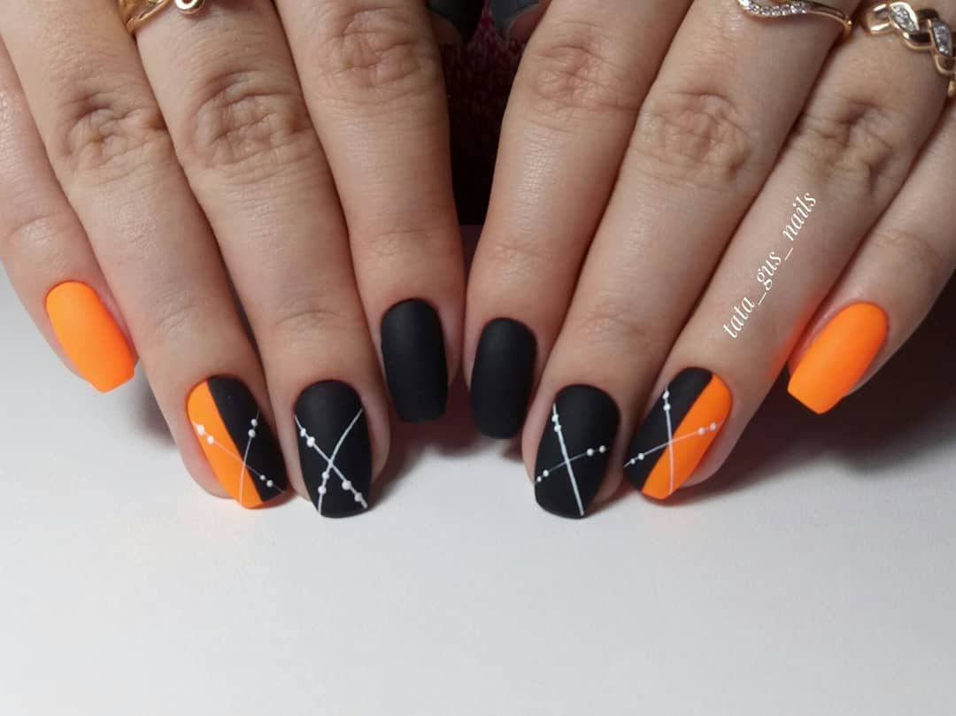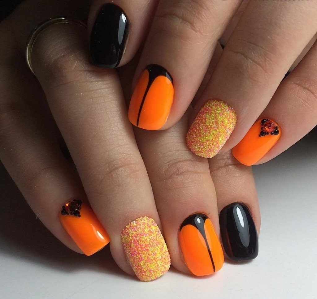 Можно ли представить летний или осенний маникюр без оранжевых оттенков? Конечно, нет. И если летом мы используем черный лак минимально, то в остальное время года он применяется в дизайне ногтей очень активно. Если дополнить его модным оттенком tangelo, получится стильный и очень модный маникюр.