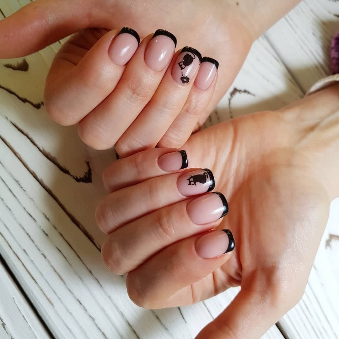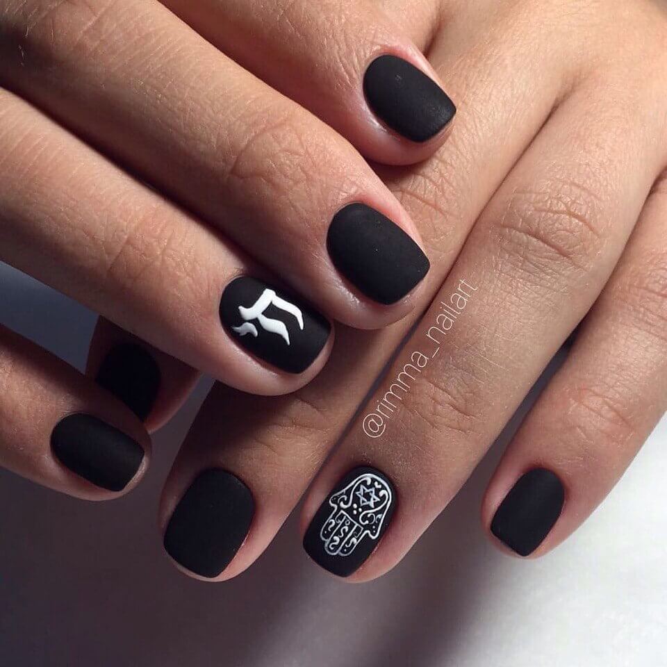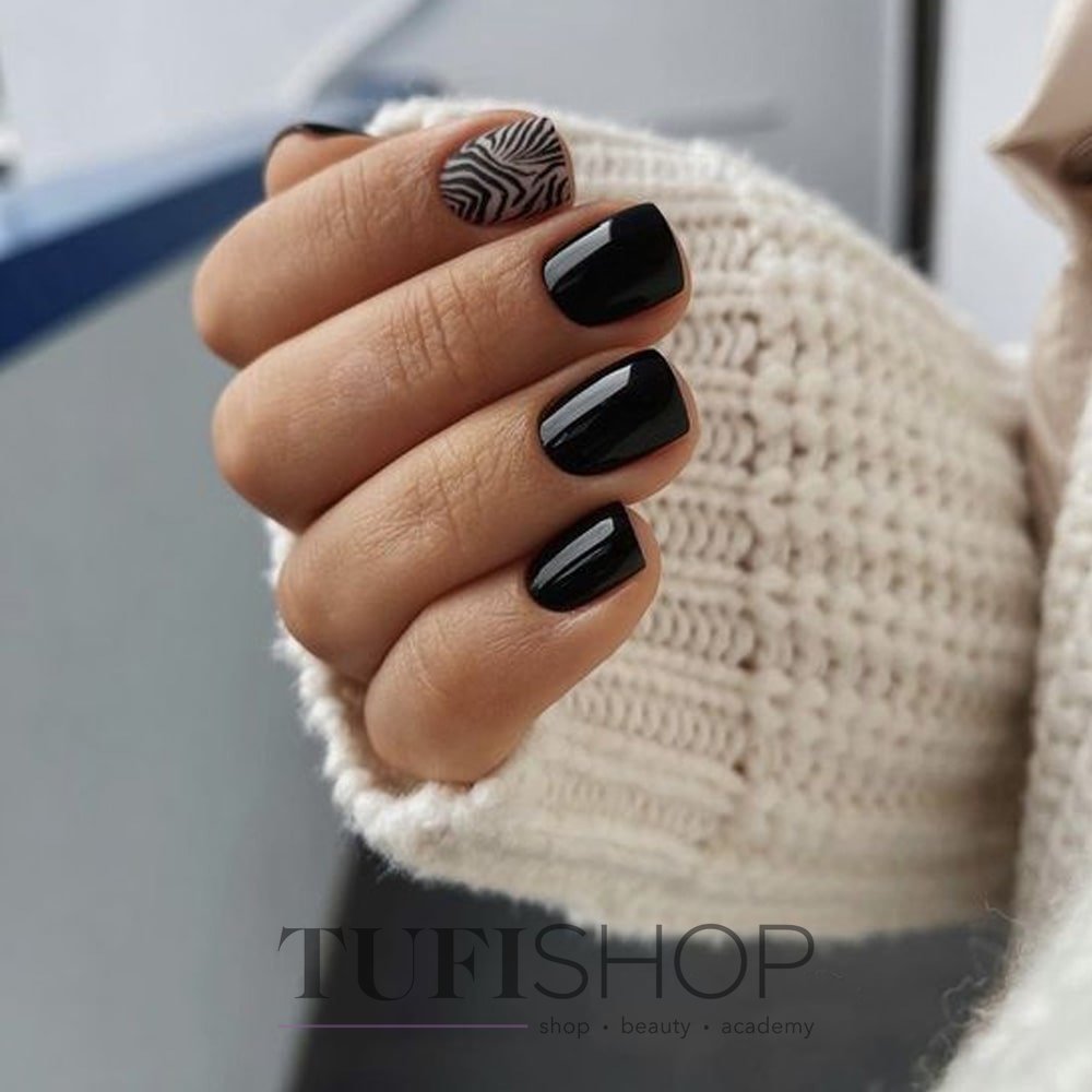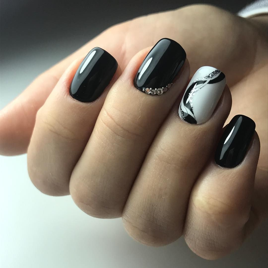 Долгое время бытовало правило — чем короче длина, тем светлее должен быть лак. Сейчас это правило не действует. И для короткой длины черный маникюр с дизайном — отличное решение. Особенности черного маникюра для короткой длины: