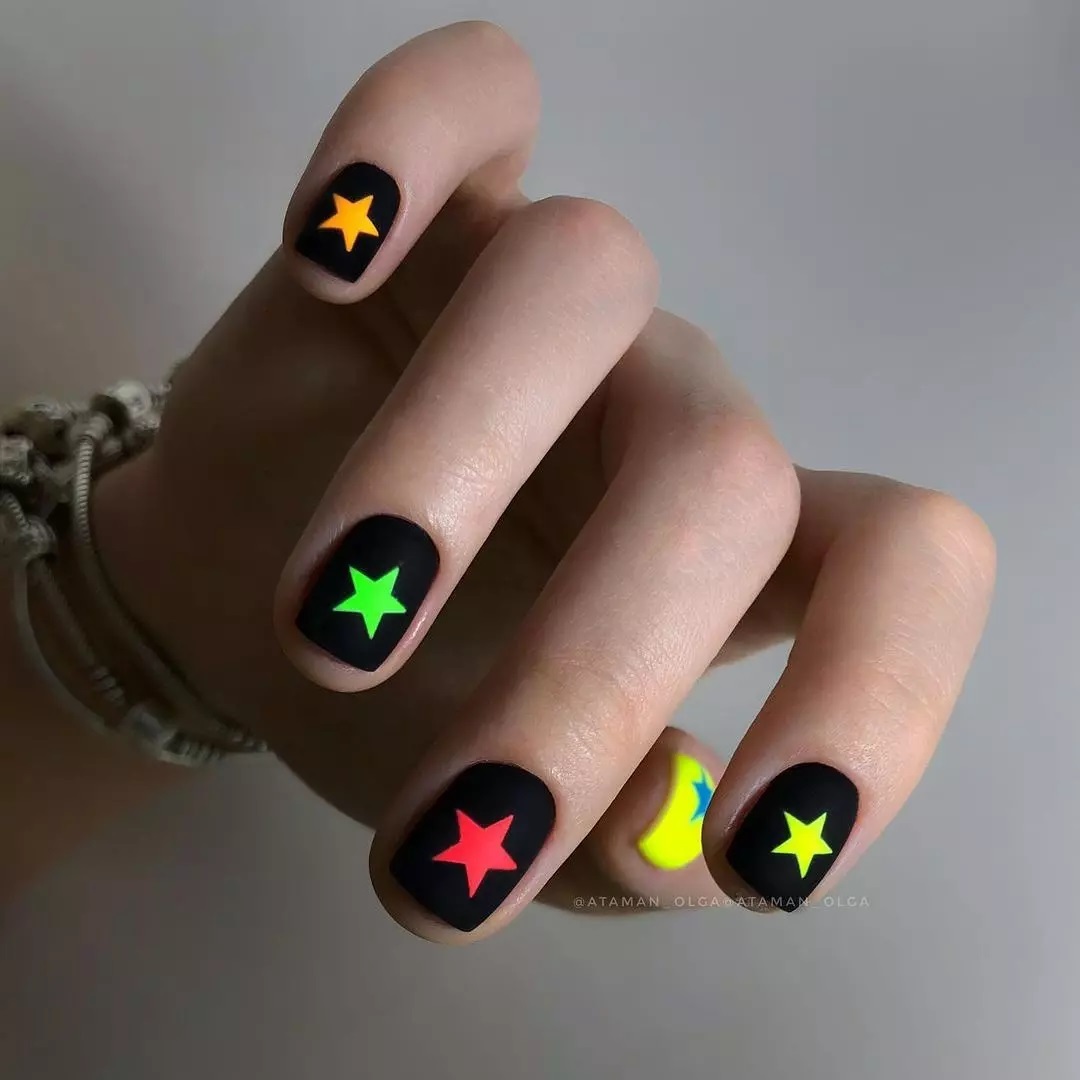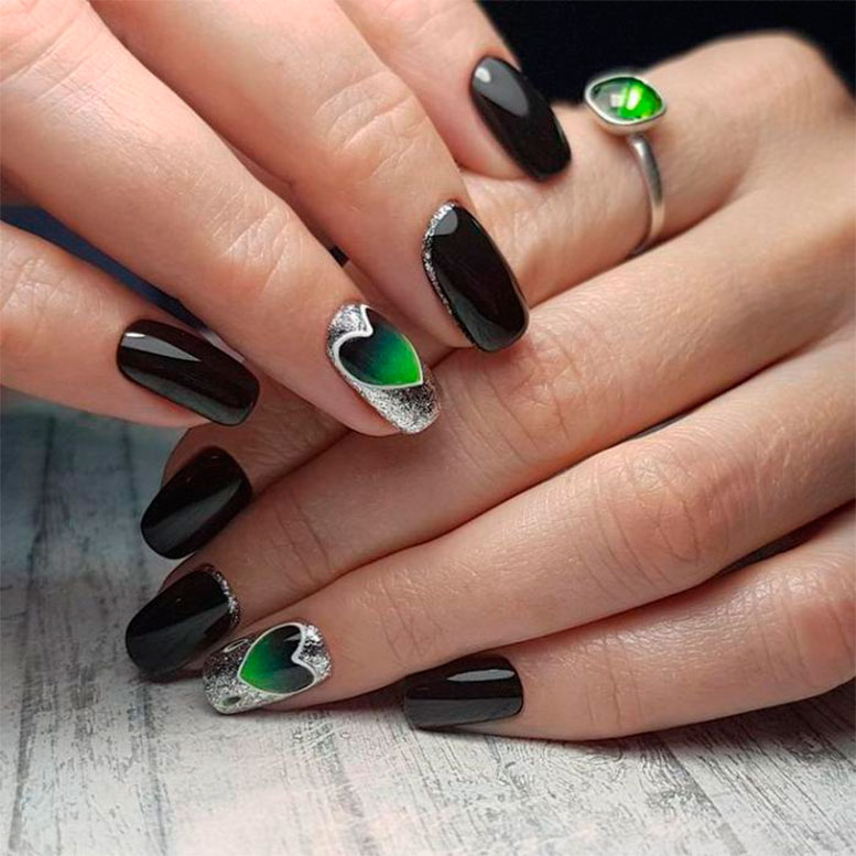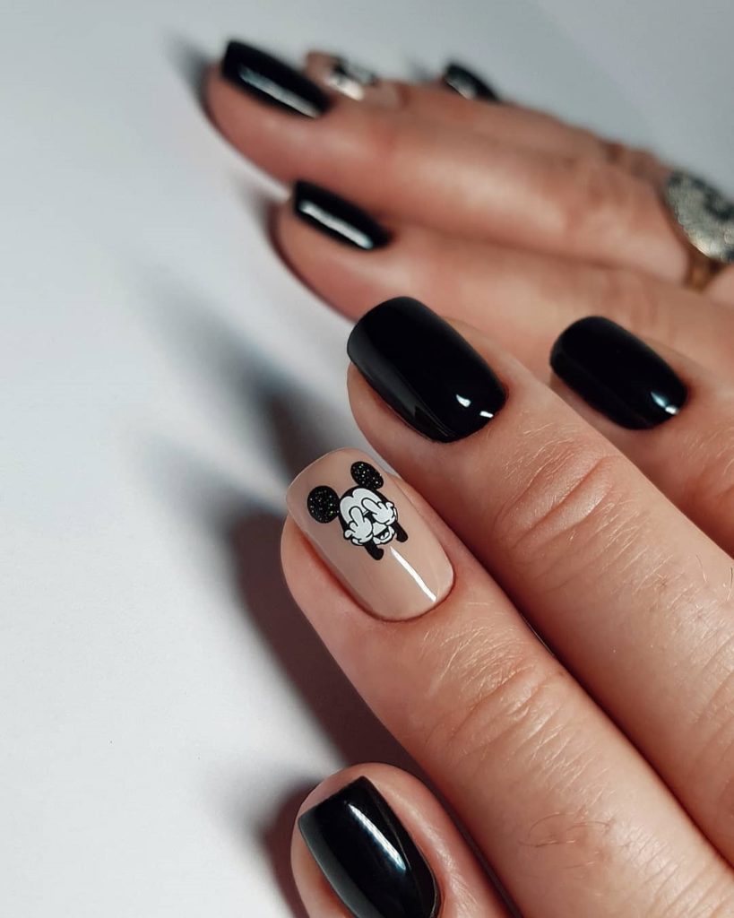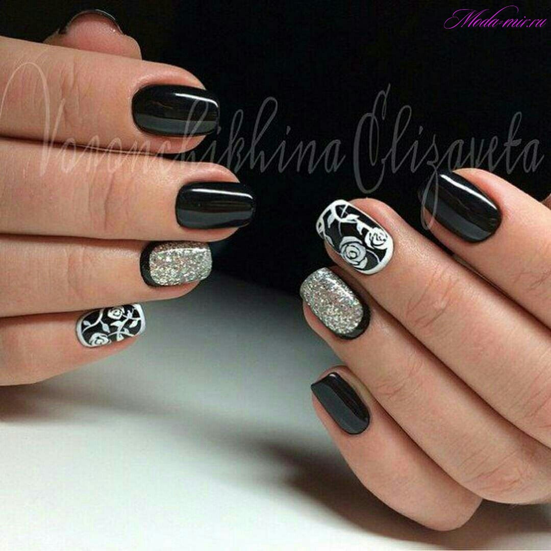 Долгое время бытовало правило — чем короче длина, тем светлее должен быть лак. Сейчас это правило не действует. И для короткой длины черный маникюр с дизайном — отличное решение. Особенности черного маникюра для короткой длины: