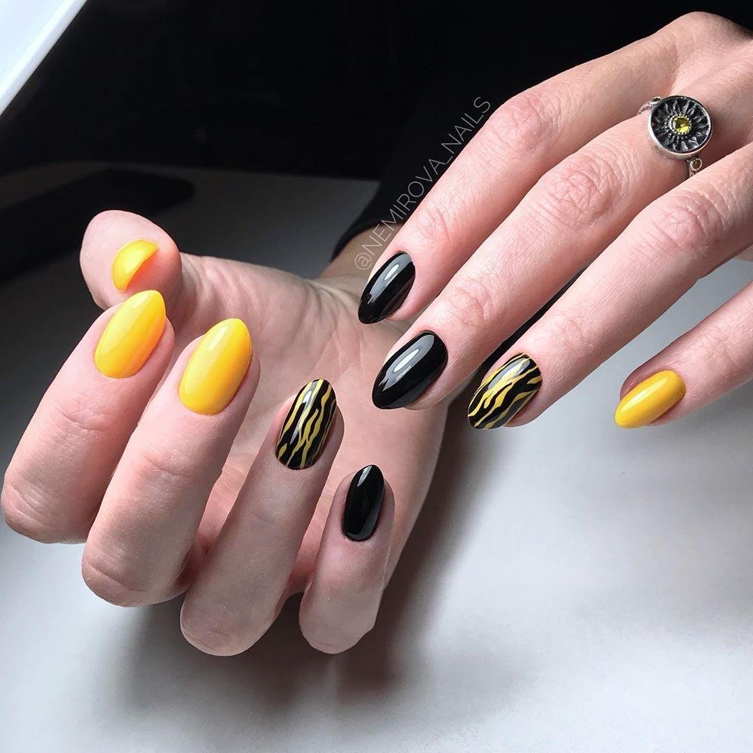 Желтый в этом сезоне популярен как никогда. Институт Понтон рекомендует обратить особое внимание на оттенок «императорский желтый» в сезоне весна-лето. А мастера нейл-арта называют оттенки, которые актуальны круглый год и отлично сочетаются с черным — пастельный желтый, банановый, шафрановый, кукурузный и горчичный.