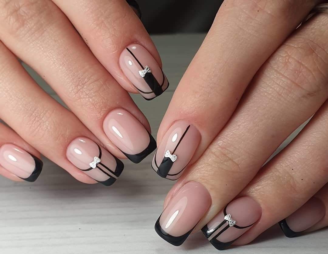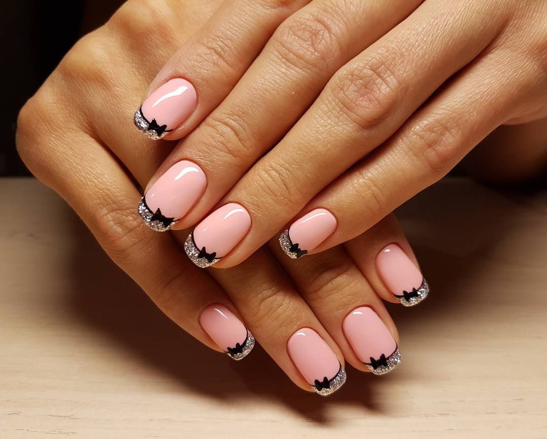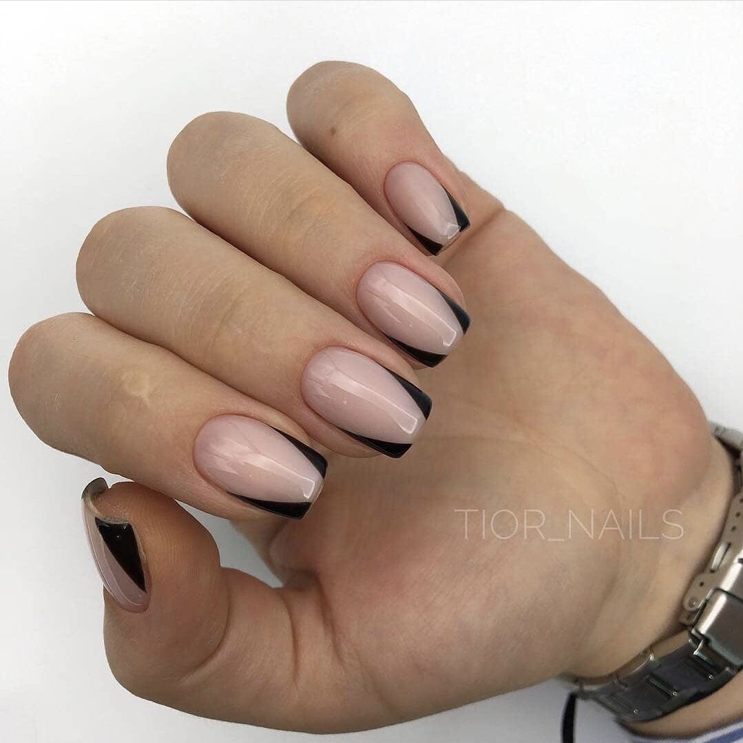 Уже давно перестал быть однообразным и скучным. Хотя это по — прежнему классика маникюра. В новом сезоне мастера рекомендуют обратить внимание на яркий цветной френч. Несмотря на то, что черный многие считают мрачным оттенком, френч в этом цвете смотрится очень стильно и интересно. Просто пофантазируйте и создавайте самые интересные миксы. Например, светлая нюдовая основа с черной улыбкой ноготка. Другой вариант — черная база с цветным оформлением кончика пластины. В сочетании с черным здорово смотрится золотой, серебристый, розовый и другие яркие оттенки.