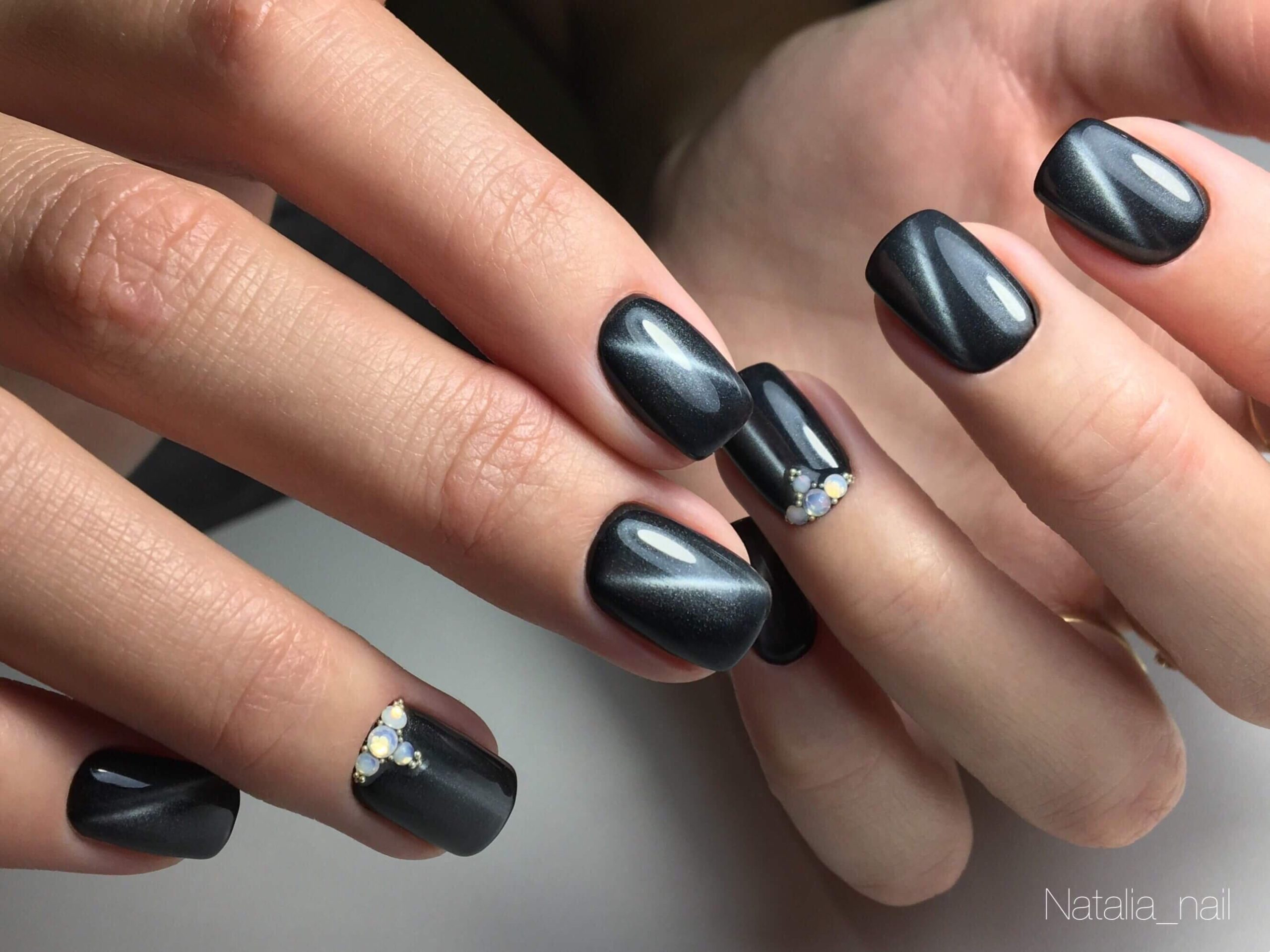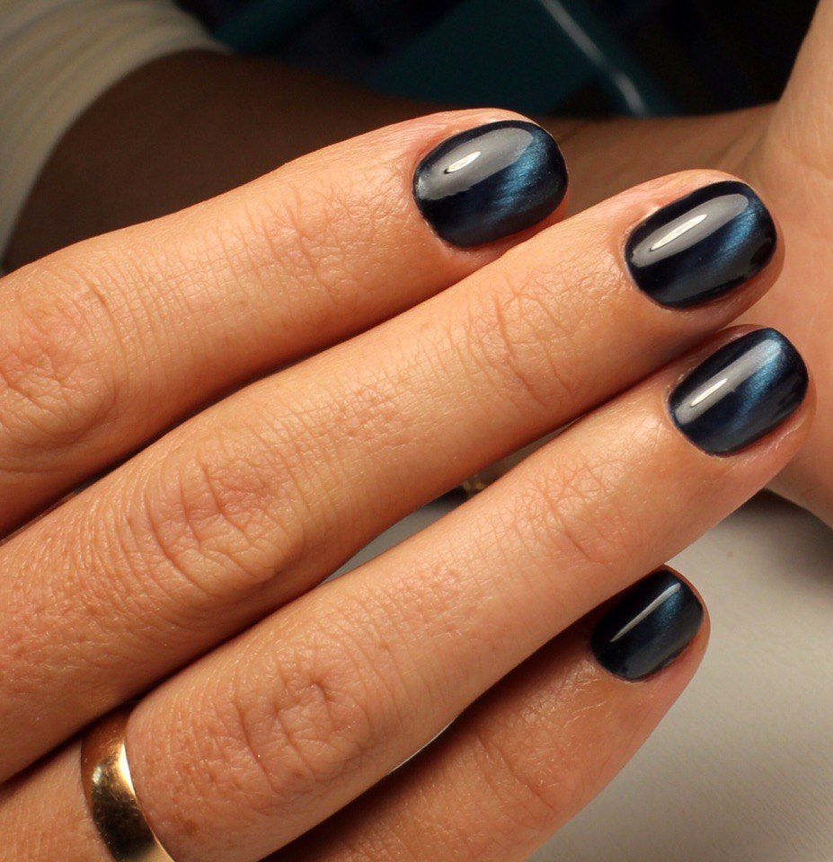 После своего появления магнитные лаки стали настолько популярны, что маникюр с так называемым эффектом кошачьего глаза не покидает топ дизайнов уже несколько сезонов подряд. После воздействия магнитом, на ногте появляется «световая линия», а сам оттенок становится более насыщенным и глубоким. Этот дизайн самодостаточен и эффектен. Дополнительного декора ему не требуется.