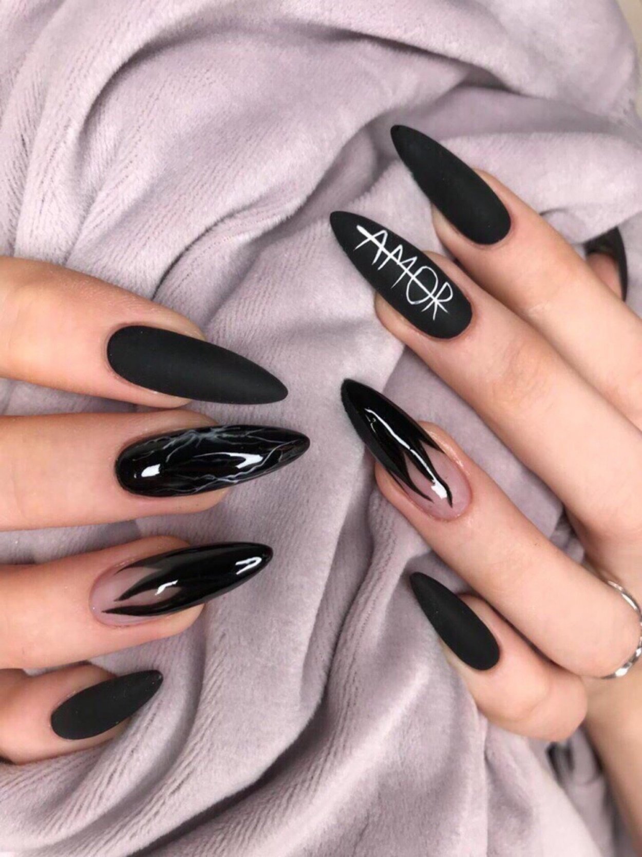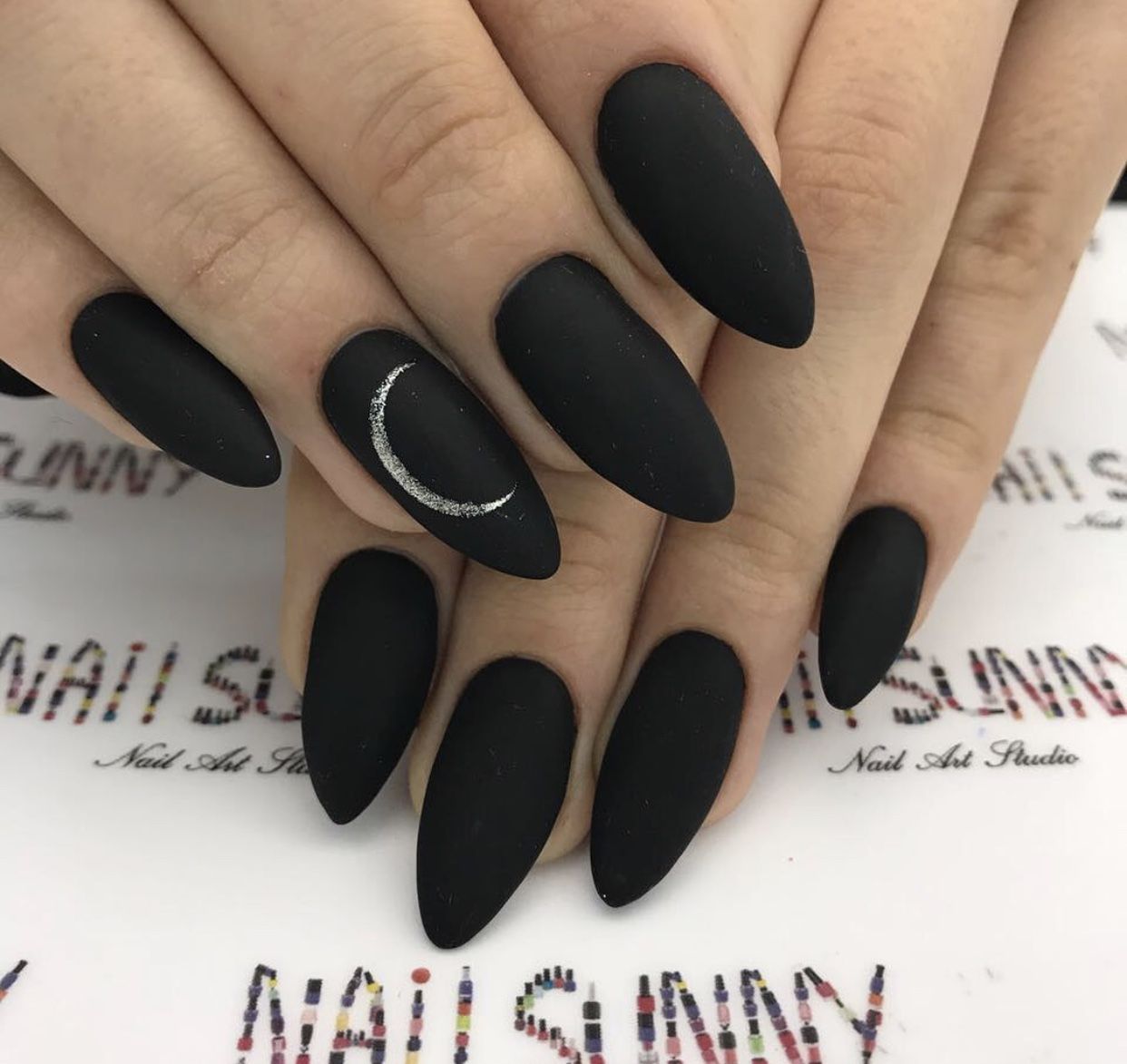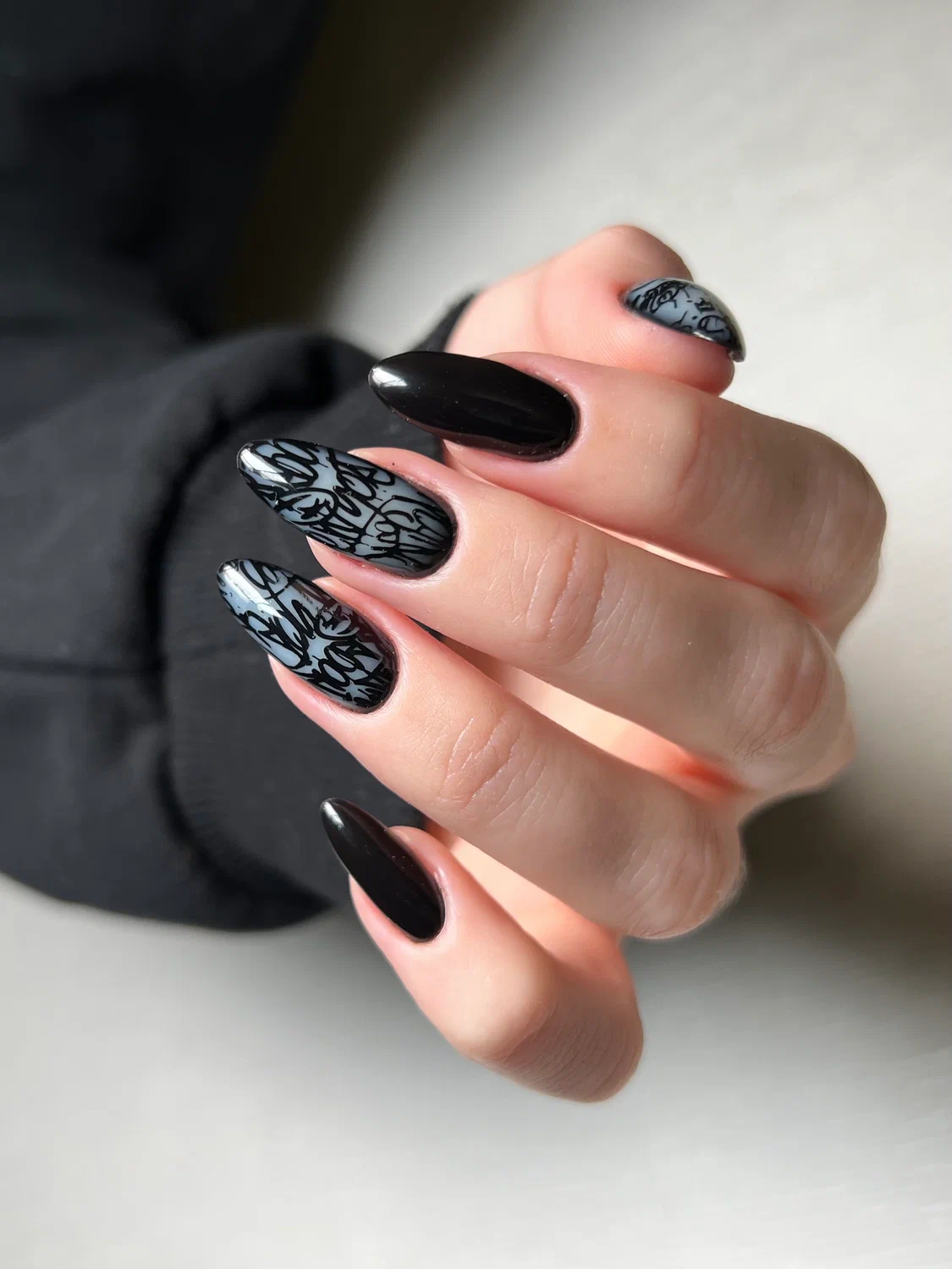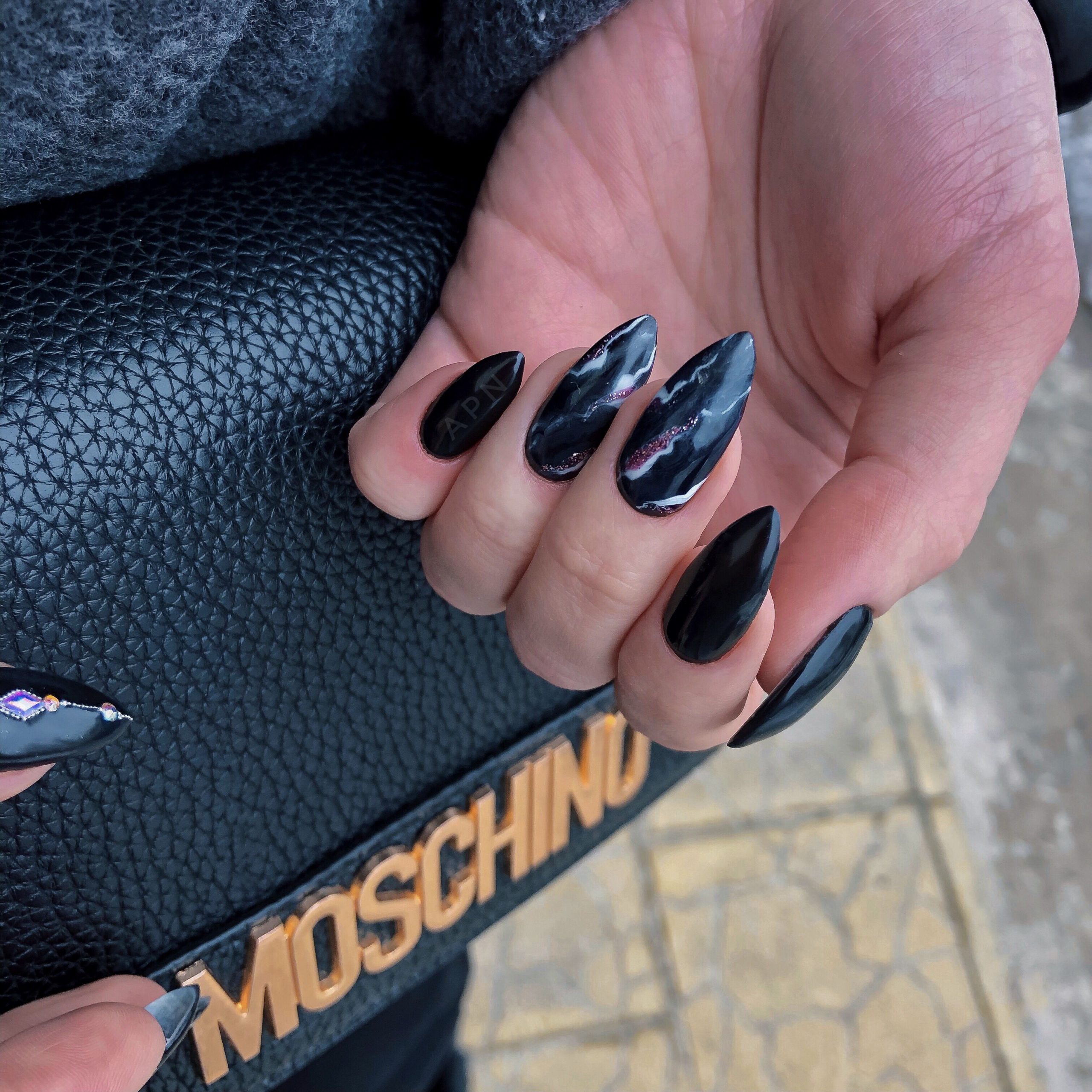 Черный маникюр на разную длину и форму ногтей