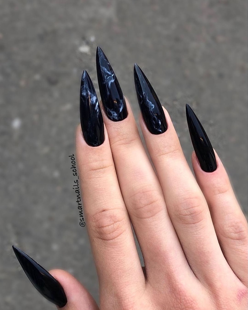 Совет: мастера нейл-арта не рекомендуют выбирать длинные заостренные ногти для ежедневного ношения. Это не практично. Кроме того, чаще всего такая форма делает пальцы шире и толще визуально.