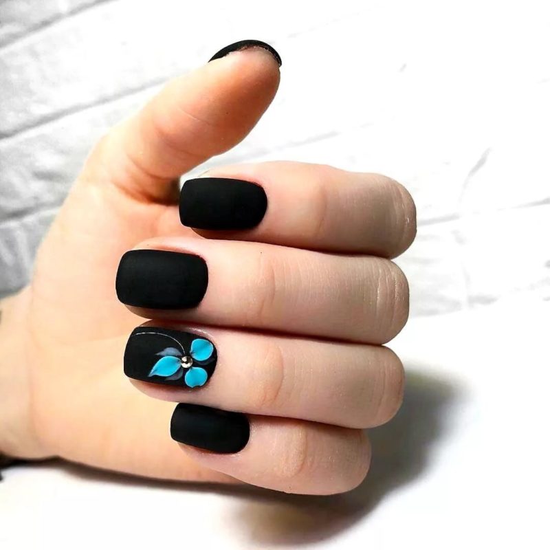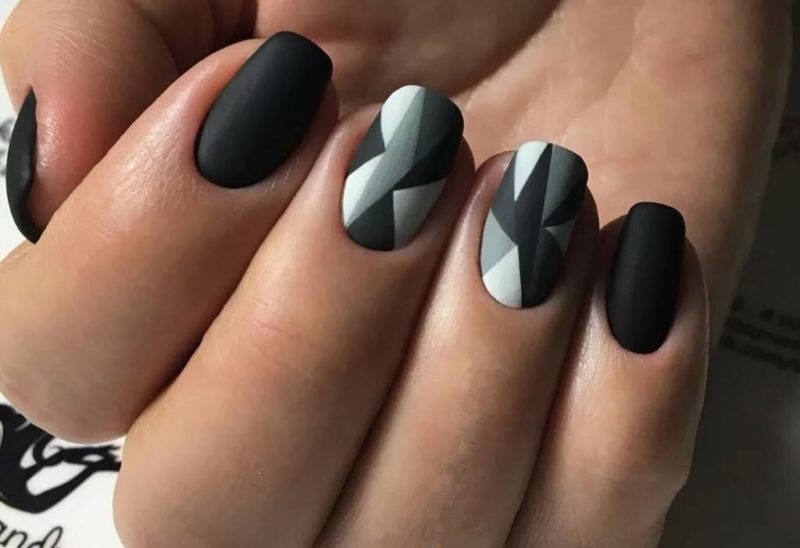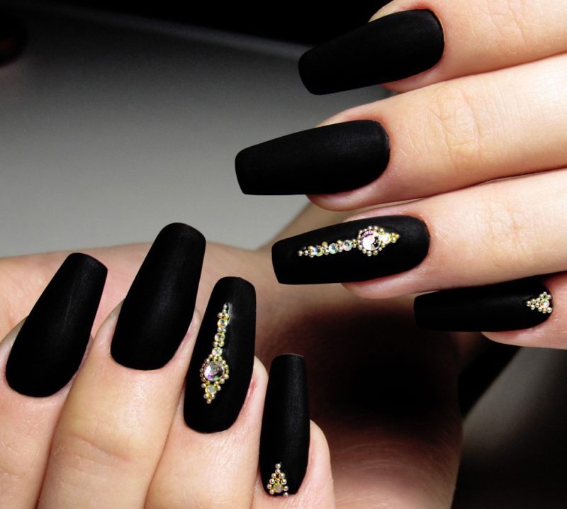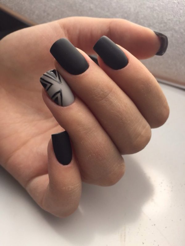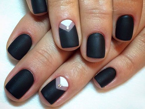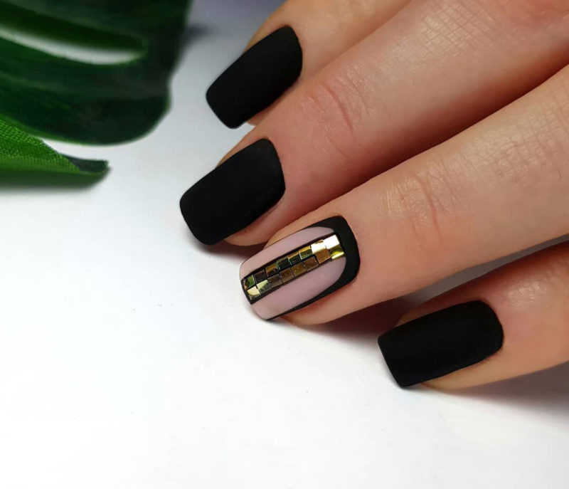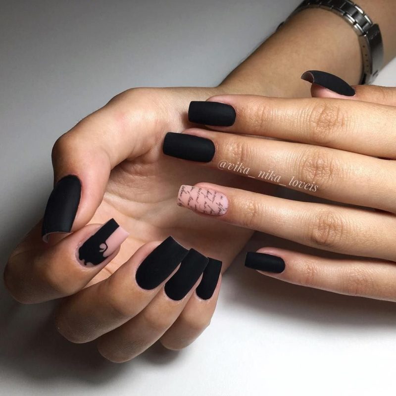 Ниже приведены самые актуальные варианты дизайна для чёрных матовых ноготков.