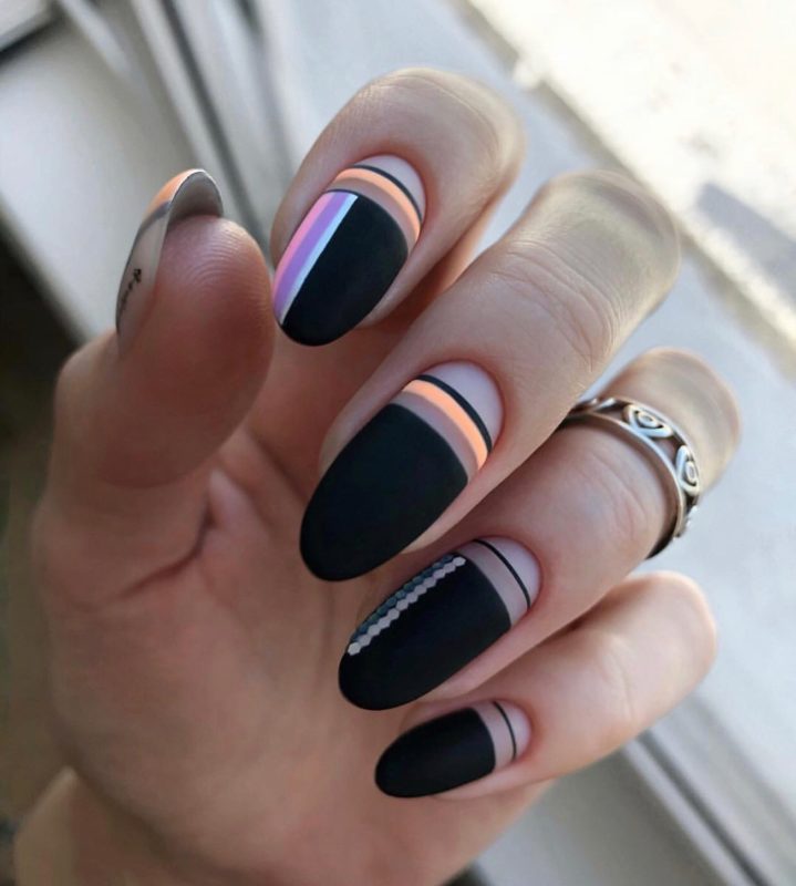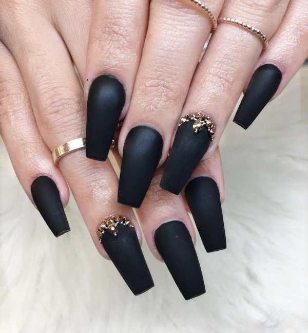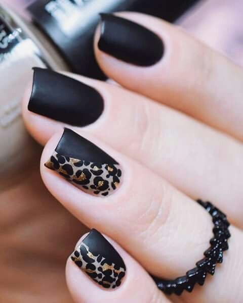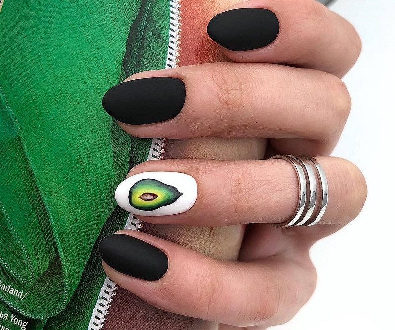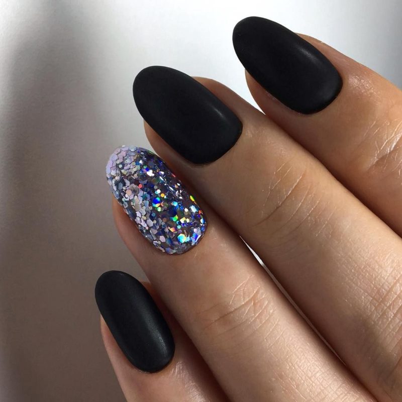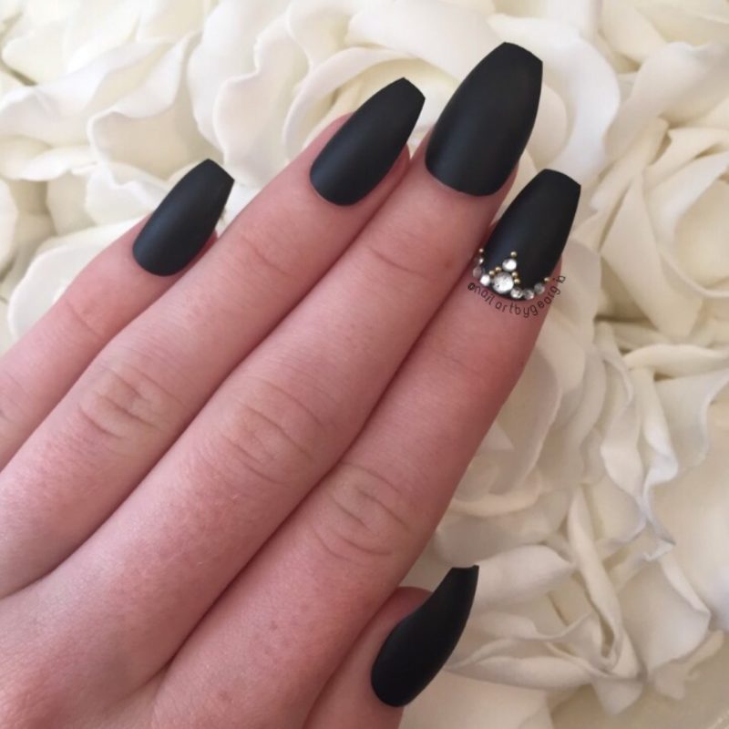 Ниже приведены самые актуальные варианты дизайна для чёрных матовых ноготков.
