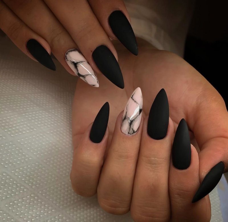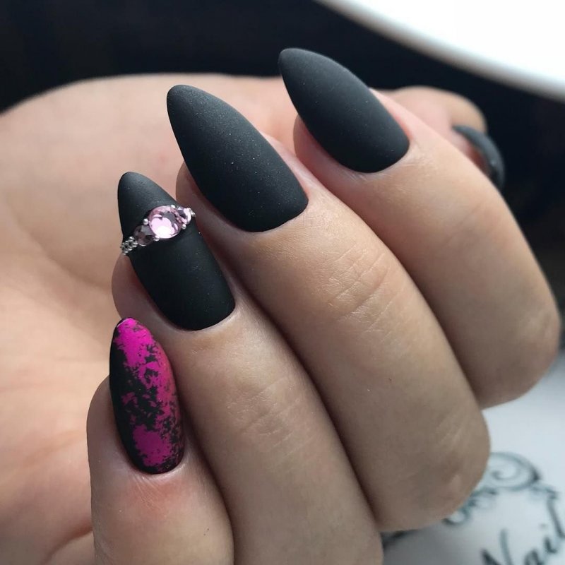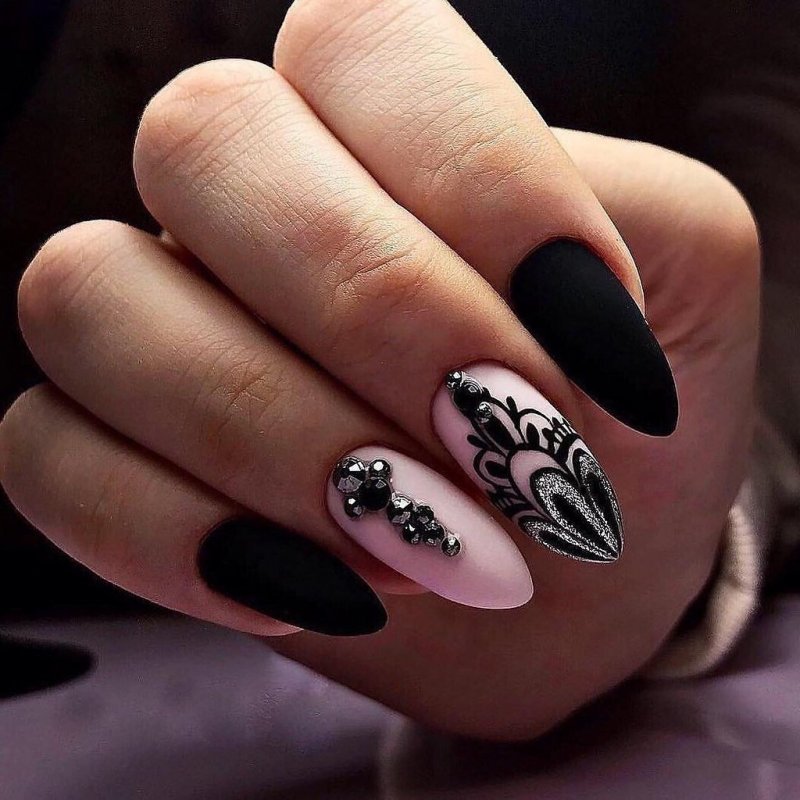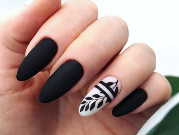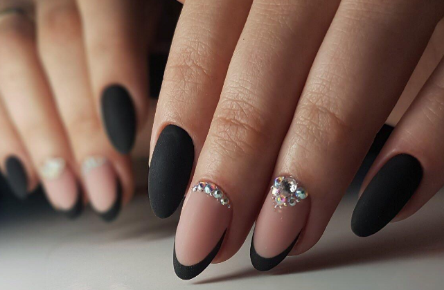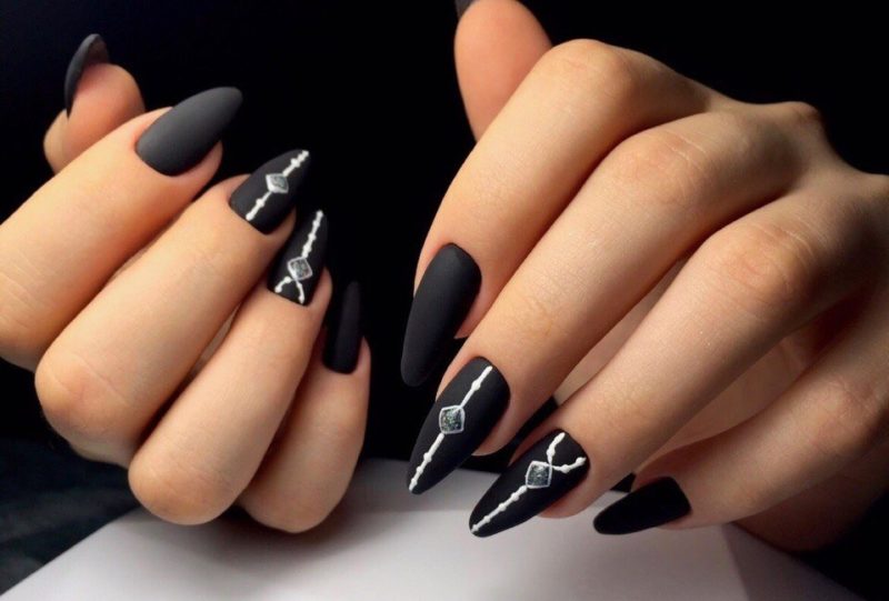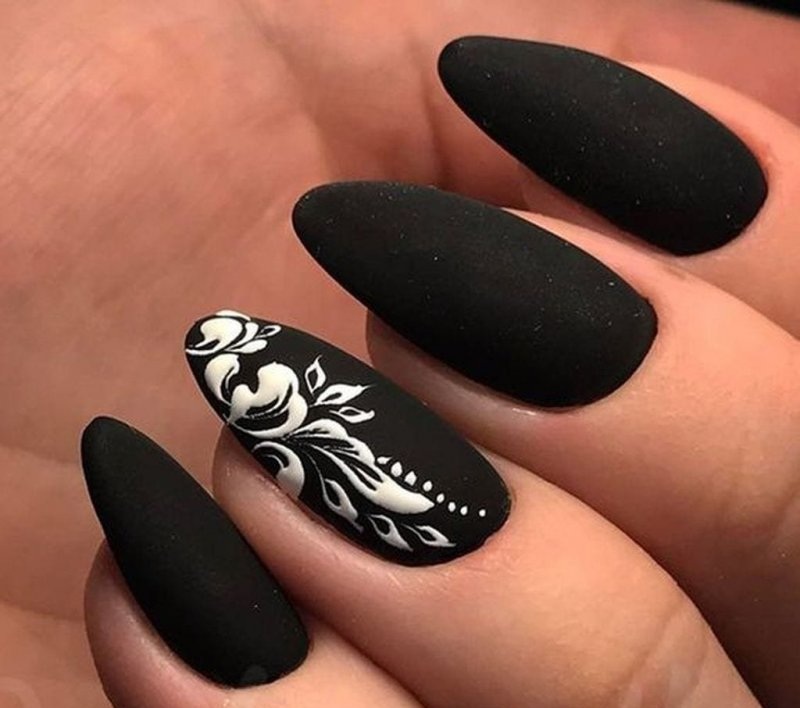 - Форма ногтей для чёрного матового маникюра с дизайном