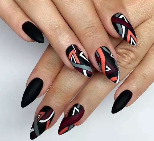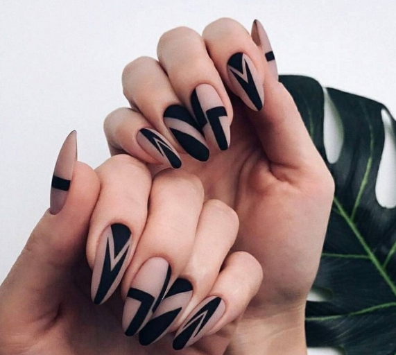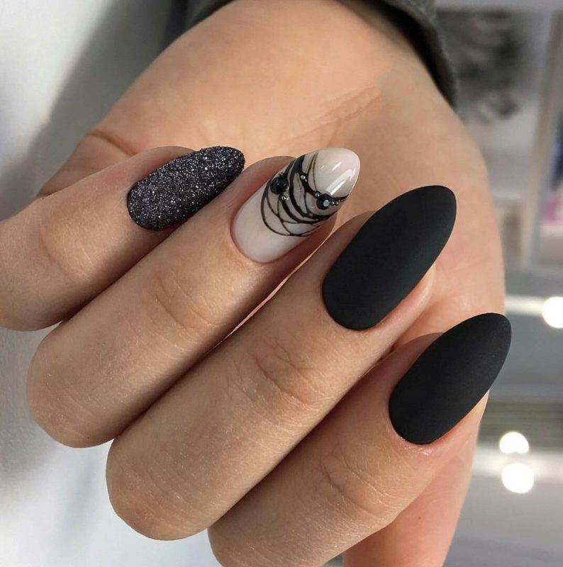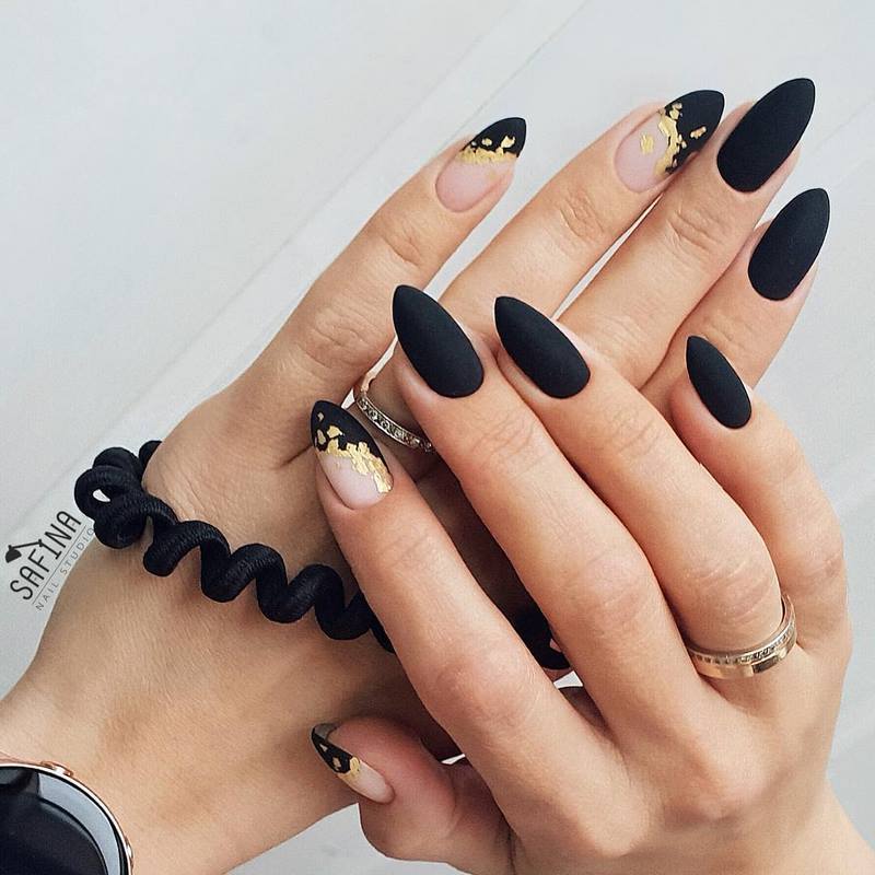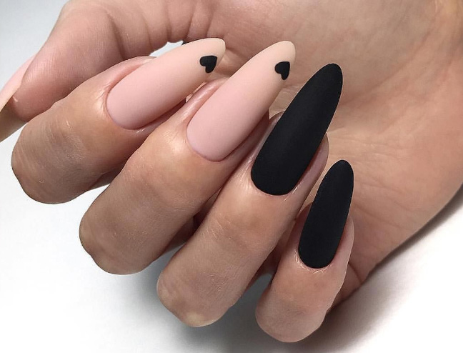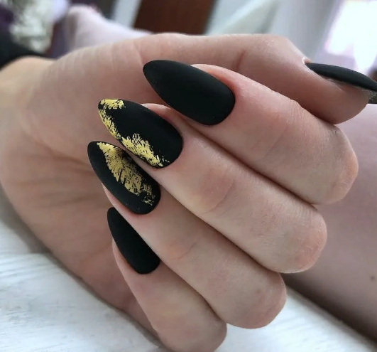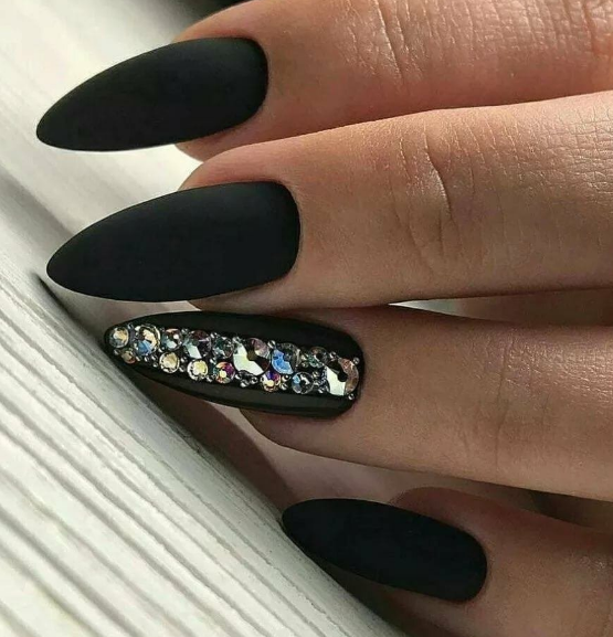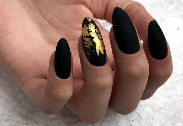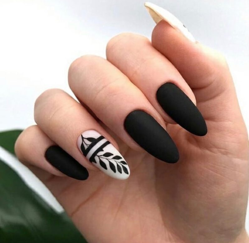 - Форма ногтей для чёрного матового маникюра с дизайном