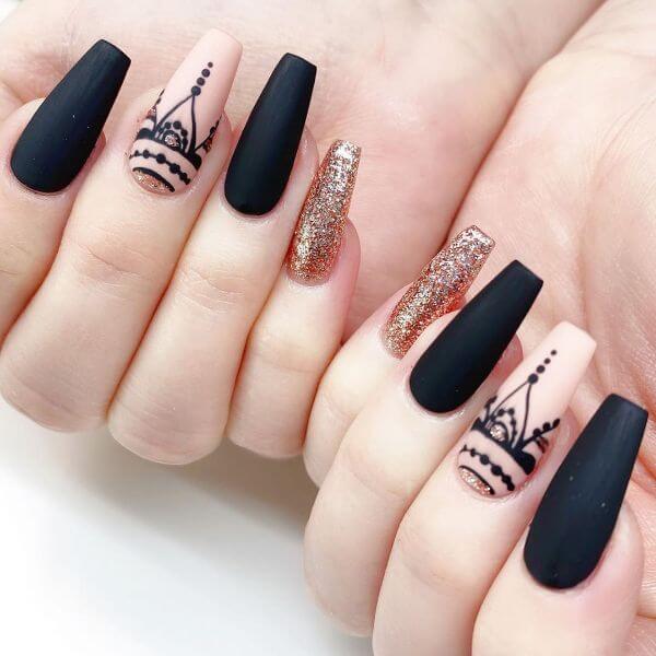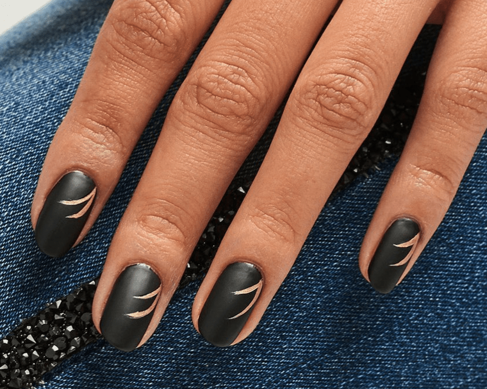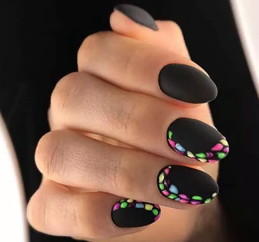 Актуальные варианты дизайна для чёрных матовых ногтей