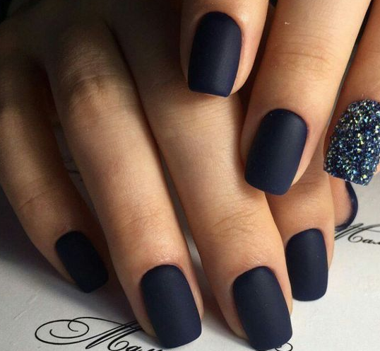 Матовый вариант темного маникюра не стоит считать скучным – существует великое множество дизайнов, которые заставят его выглядеть необычно и оригинально.