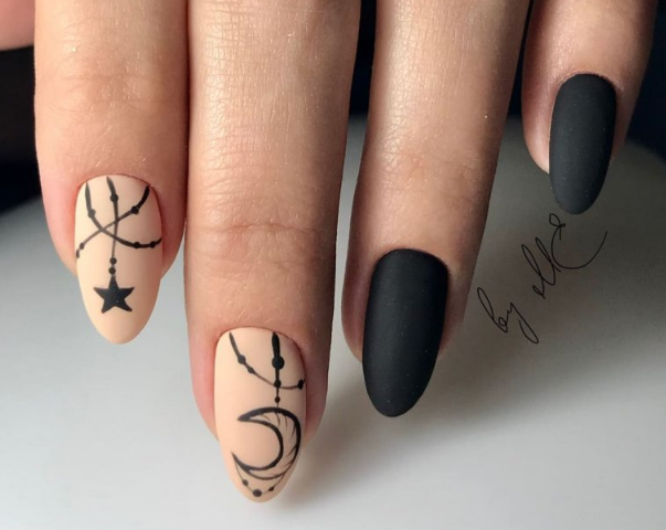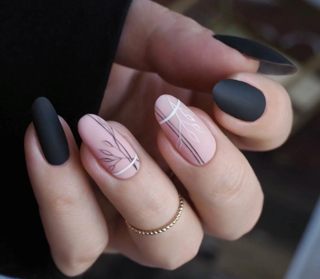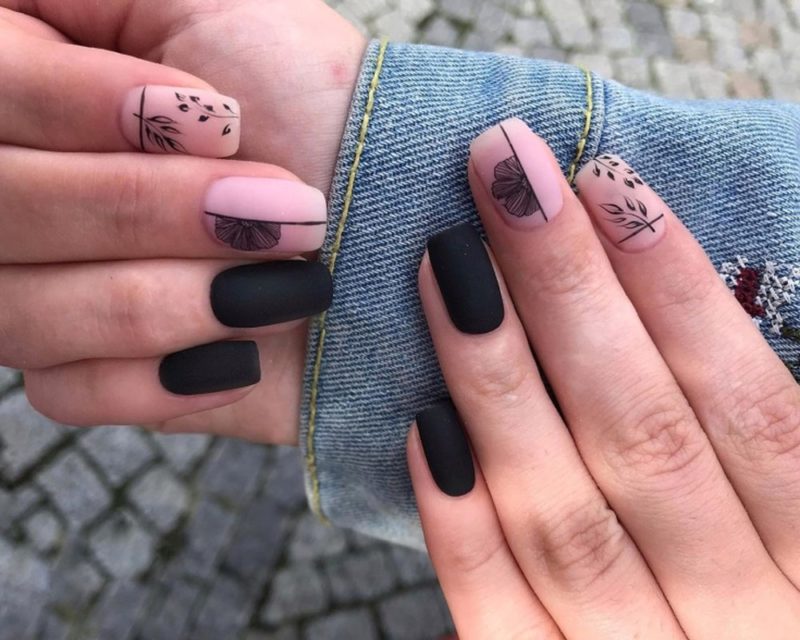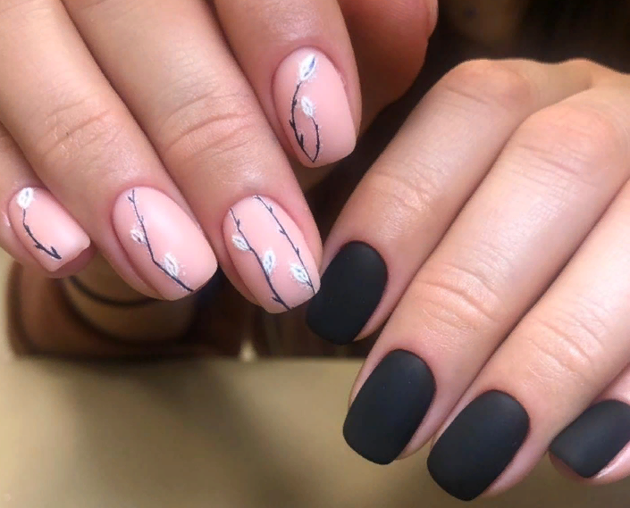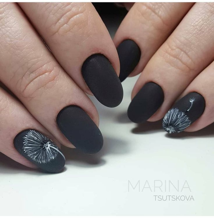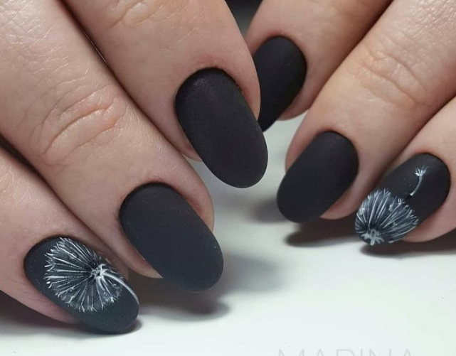 Маникюр чёрный матовый с рисунком
