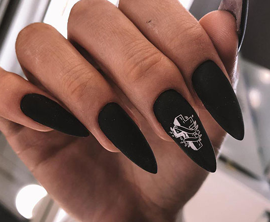 Форма ногтей для чёрного матового маникюра с дизайном