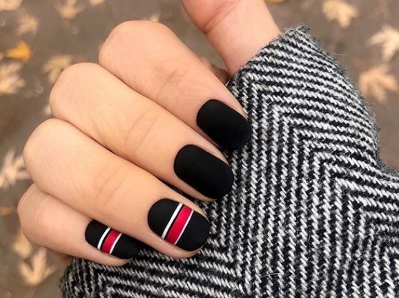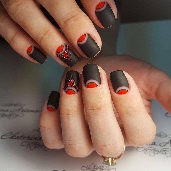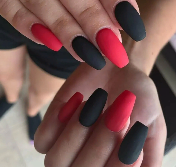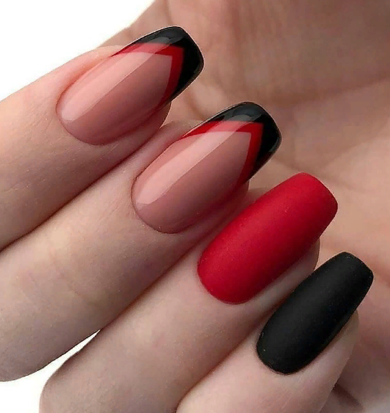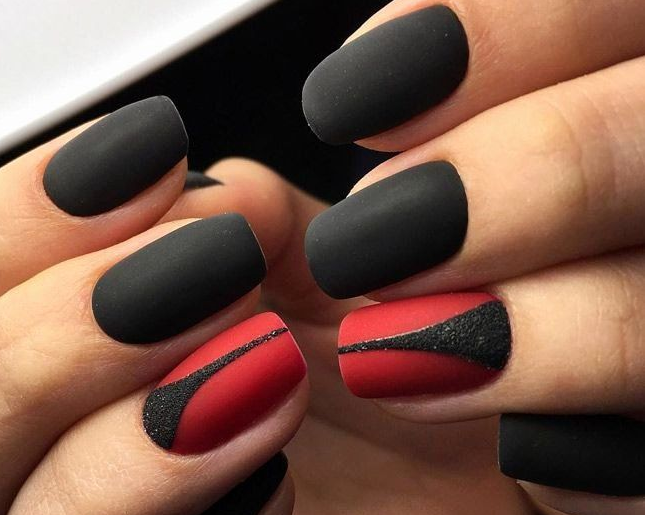Красно-чёрные матовые ногти