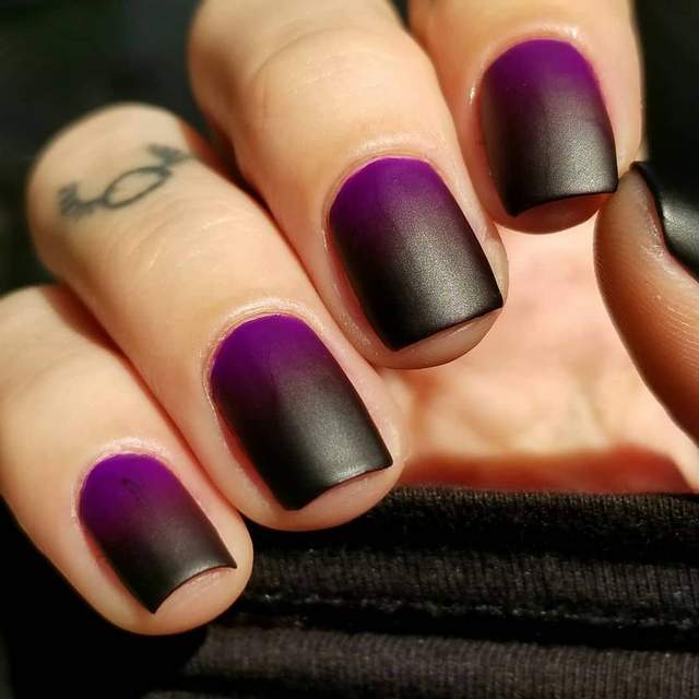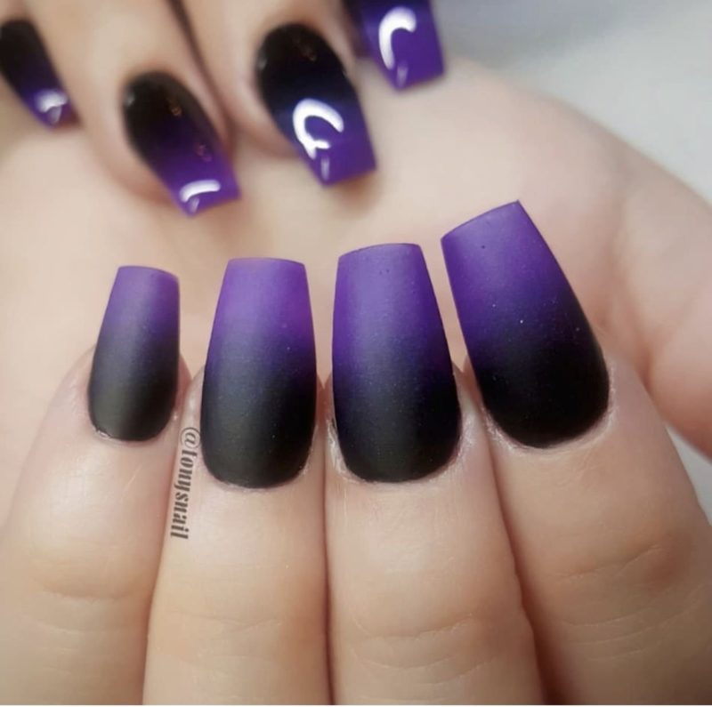 - Маникюр чёрный с фиолетовым