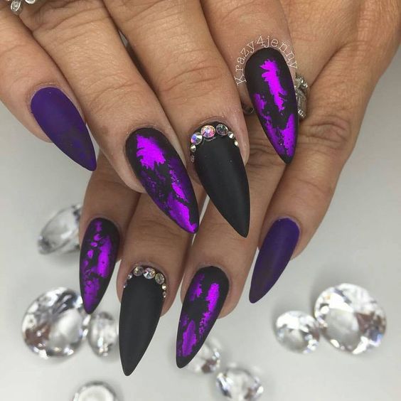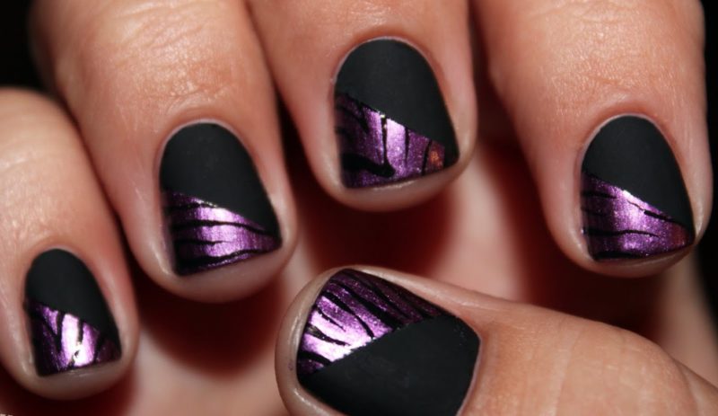 Маникюр чёрный с фиолетовым