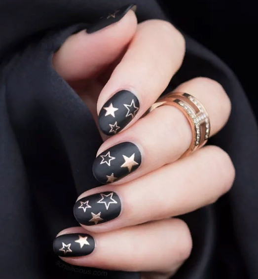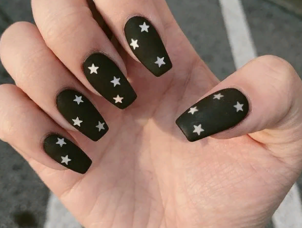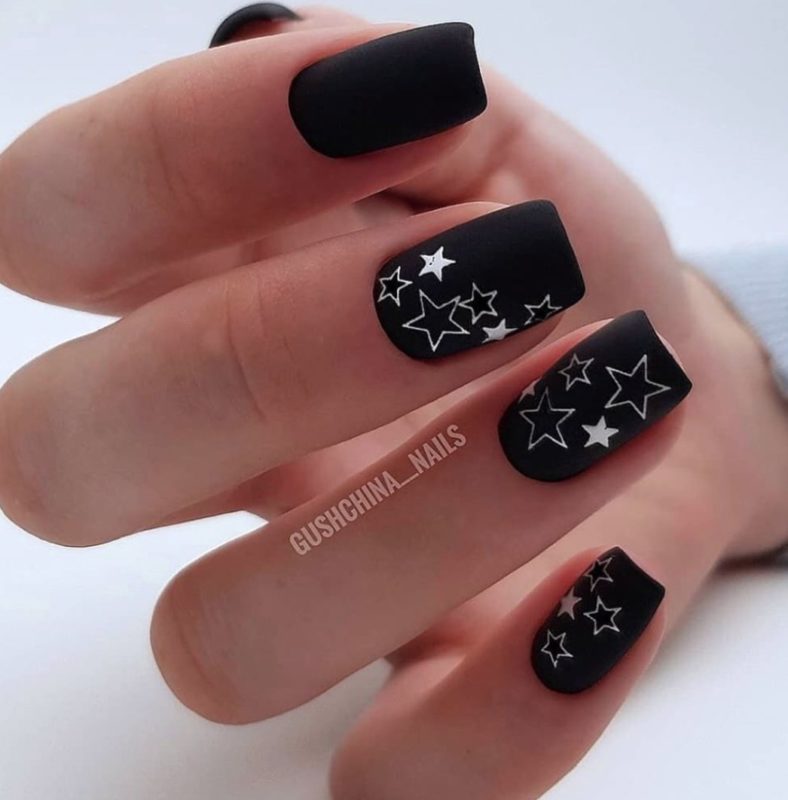 Маникюр чёрный матовый со звёздами