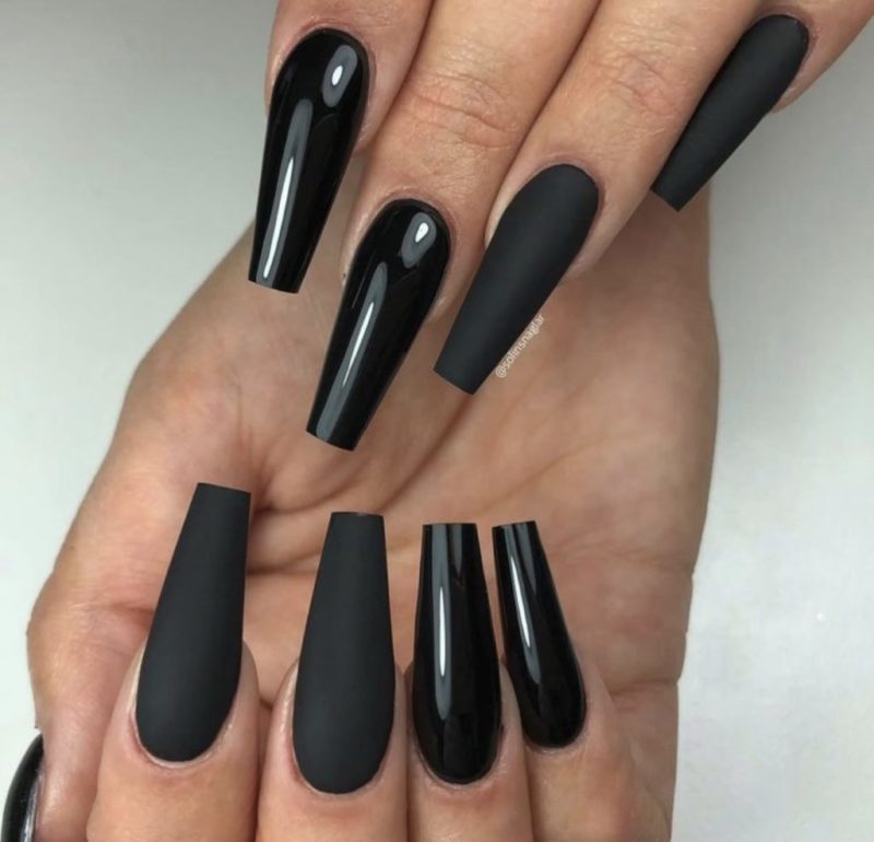 Чёрное матовое покрытие для разной длины ногтей