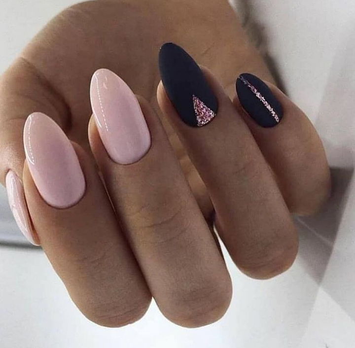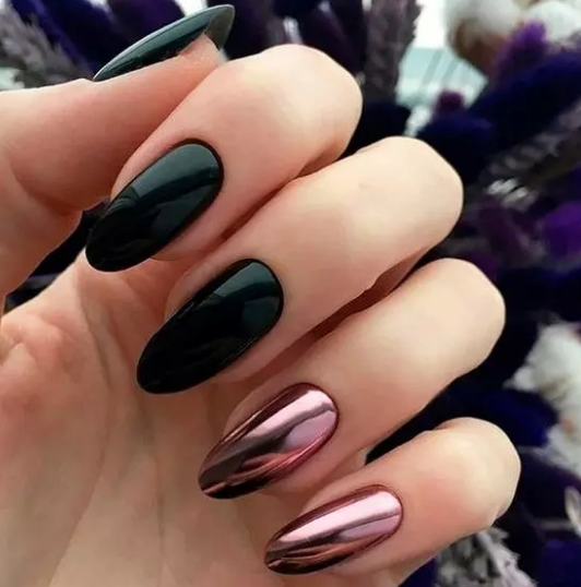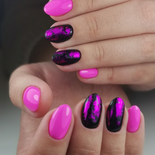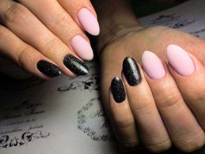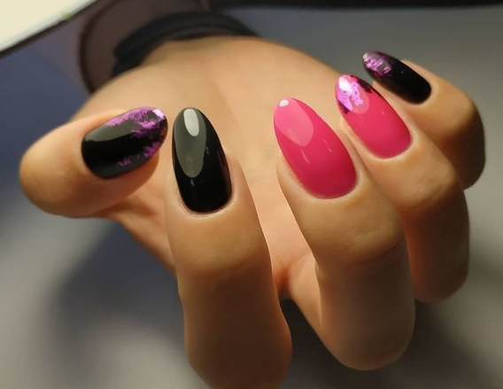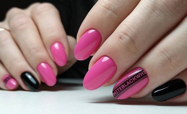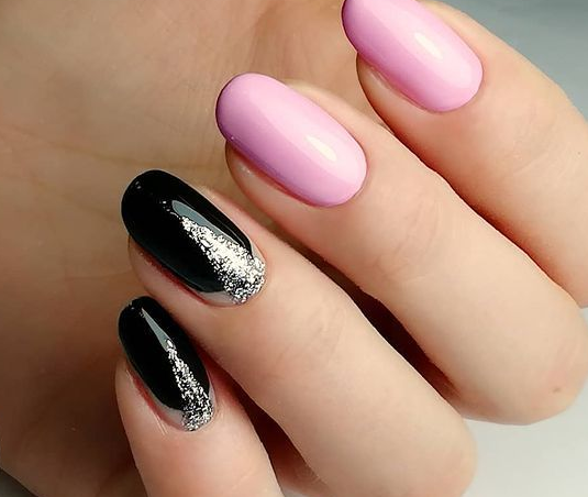 - На одной из рук сделать все ногти розового оттенка, а на другой черного.