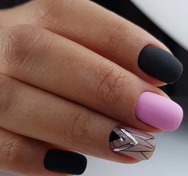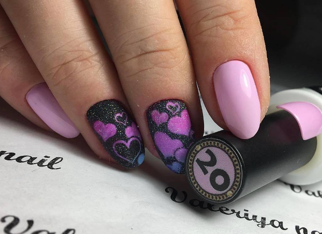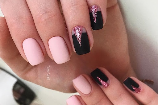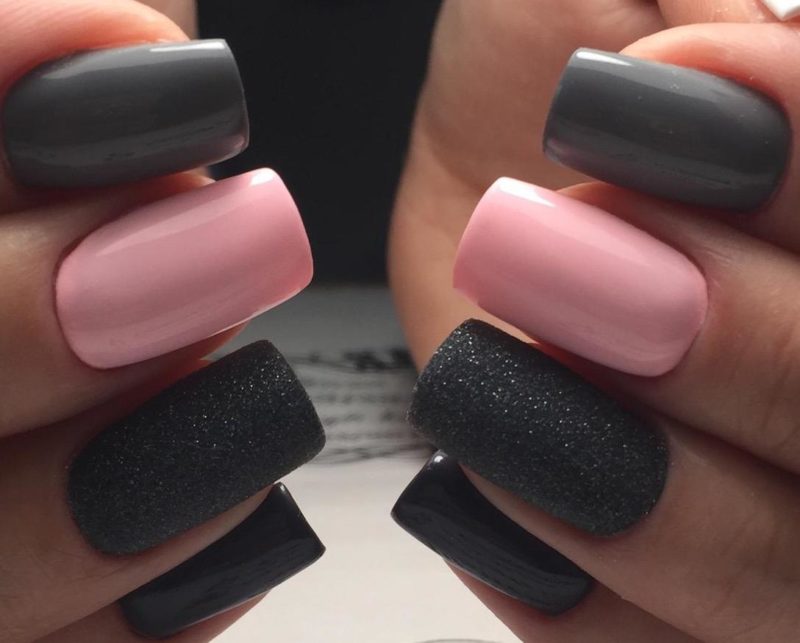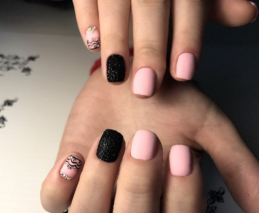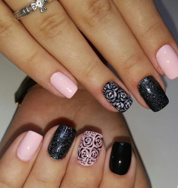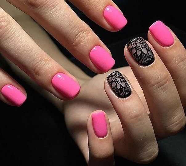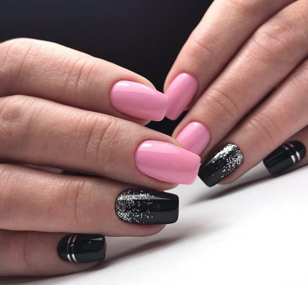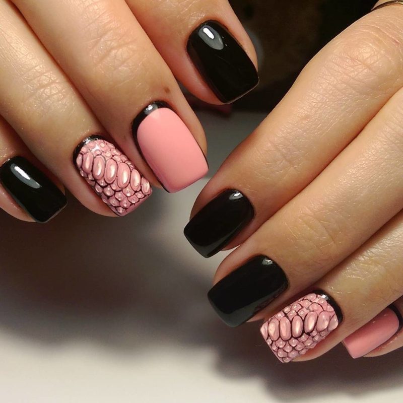 Для создания элегантного образа достаточно сделать маникюр с черным и розовым лаком. Среди множества вариантов можно подобрать дизайн для работы, на вечеринку, свидание, торжество.