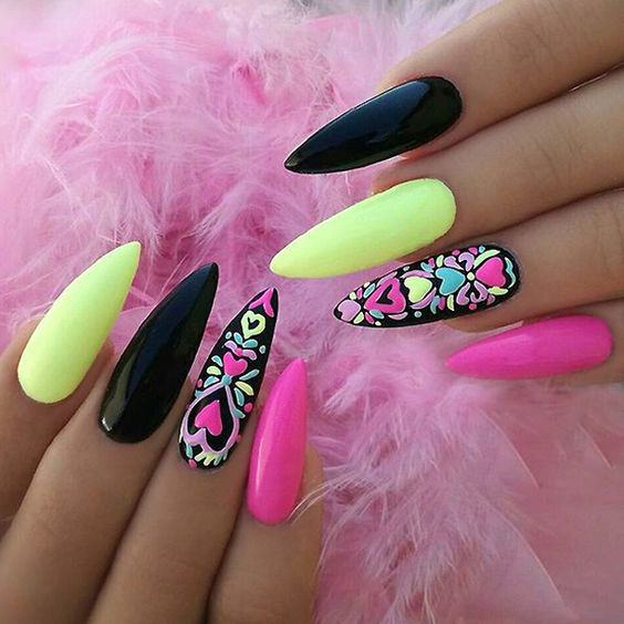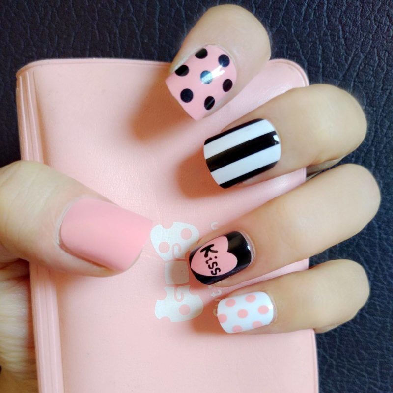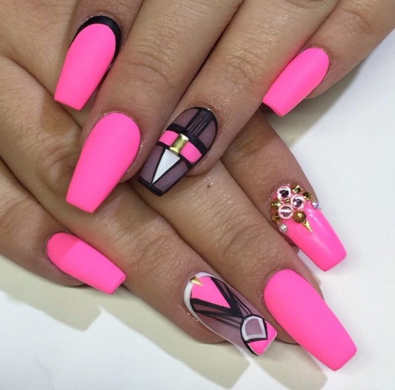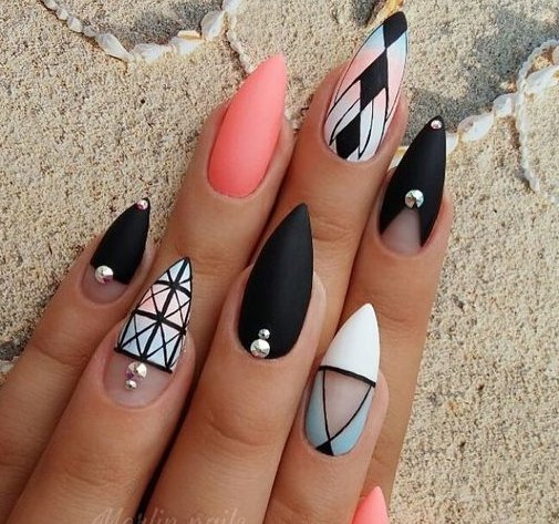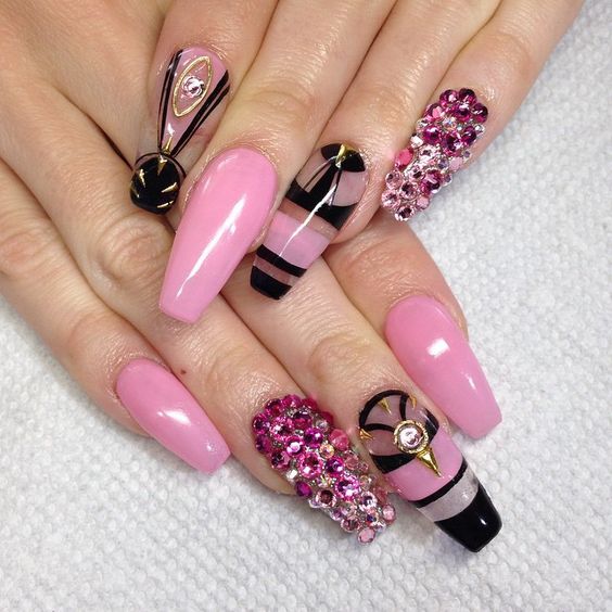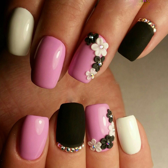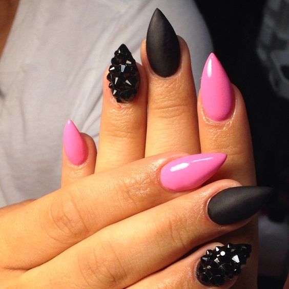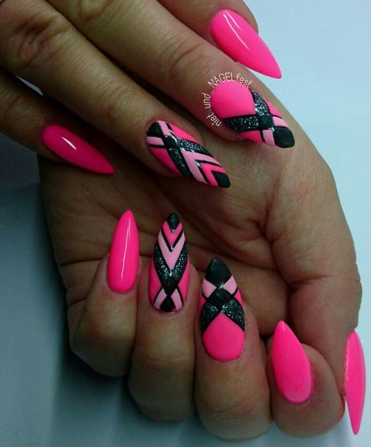 От длины зависит какие элементы дизайна можно использовать, а также какие цвета сочетать. Черный и розовый будут выглядеть на них разнообразно.