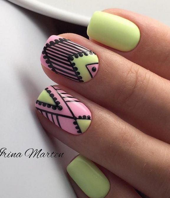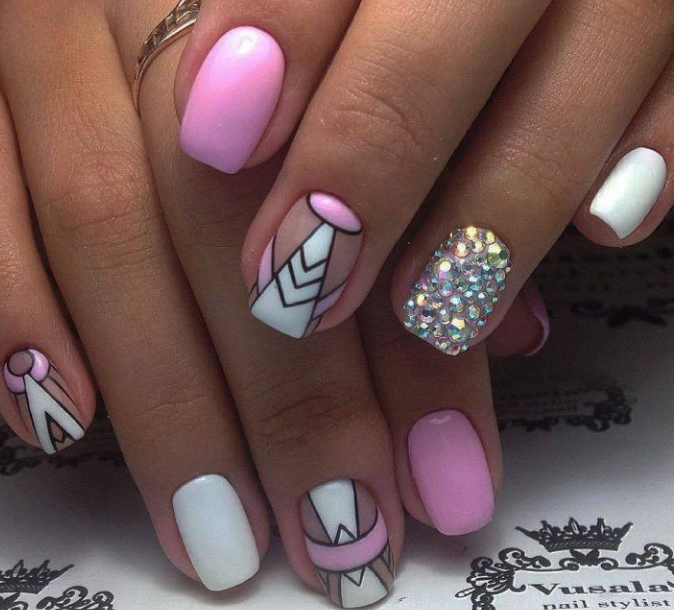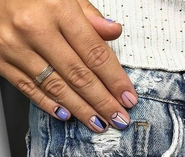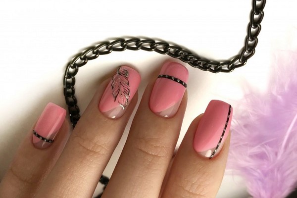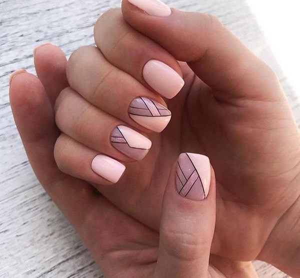 Геометрическая тема очень обширна и не теряет популярность. В маникюре можно использовать розовый тон.
