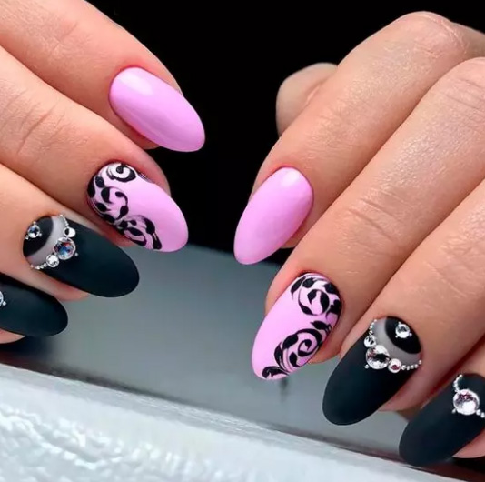 Кому и под какой образ подойдет черно-розовый маникюр?