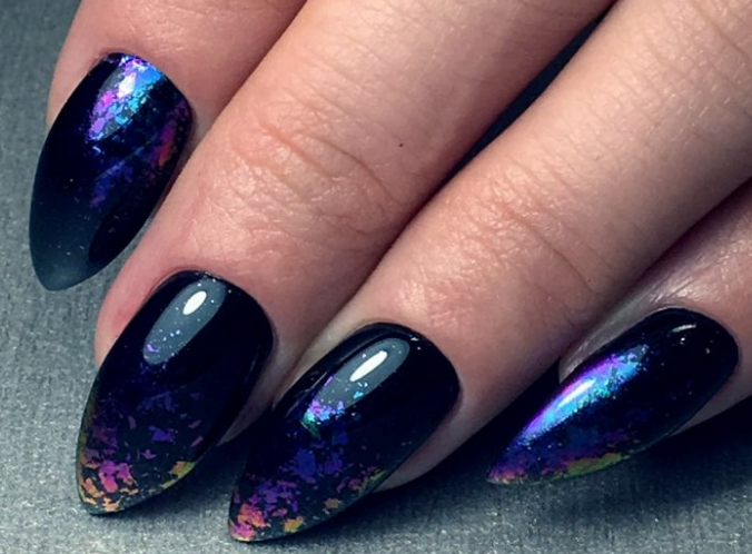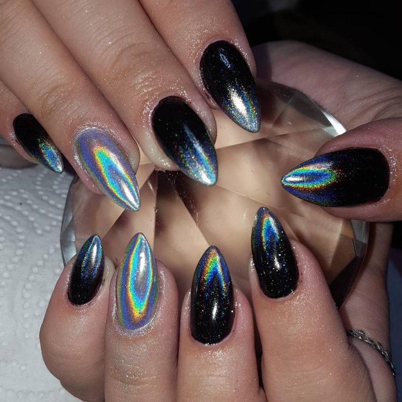 Оптимальный дизайн для голографического пигмента — омбре, темная подложка.