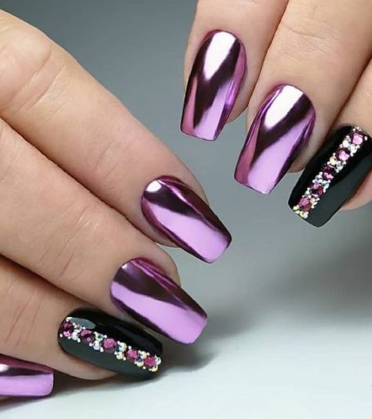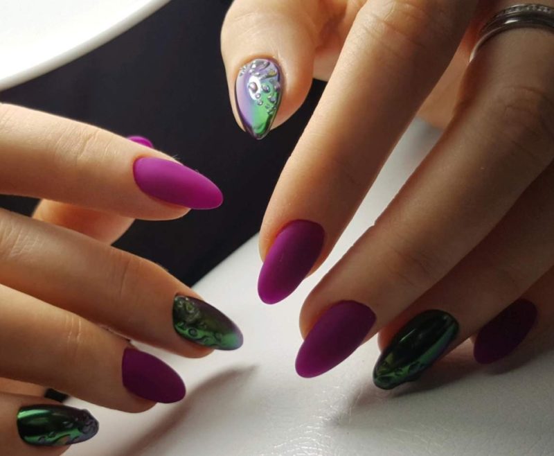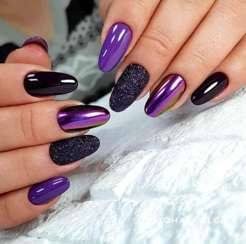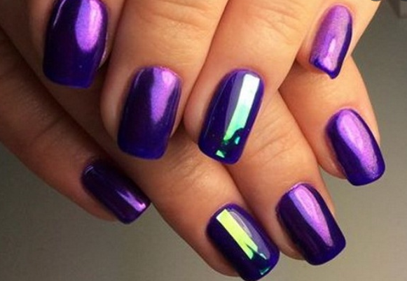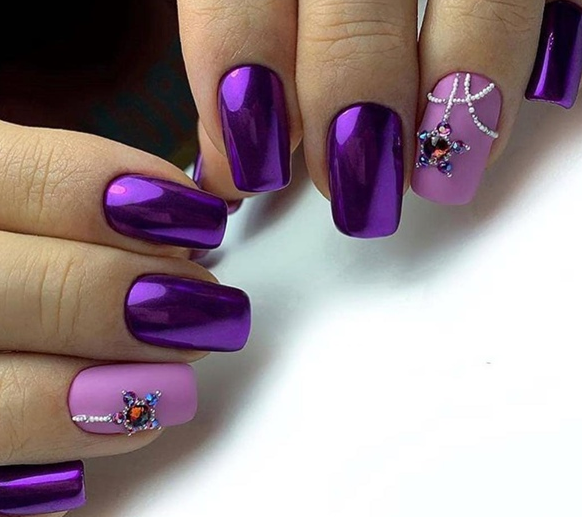 - Фиолетовый маникюр с втиркой