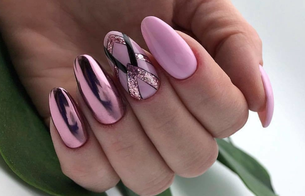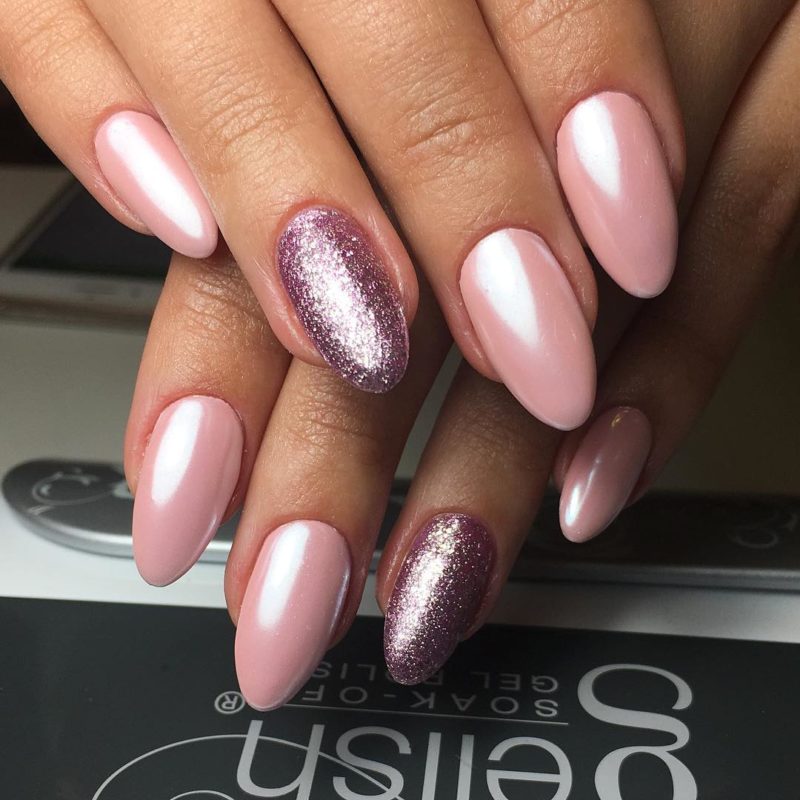 - Розовые ногти с втиркой