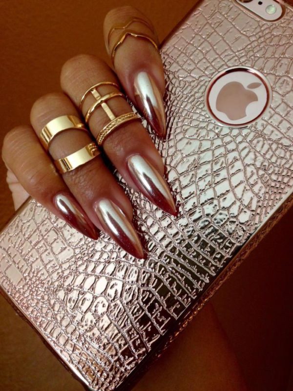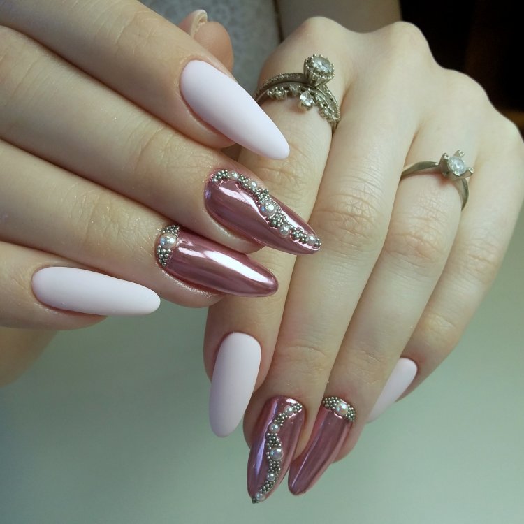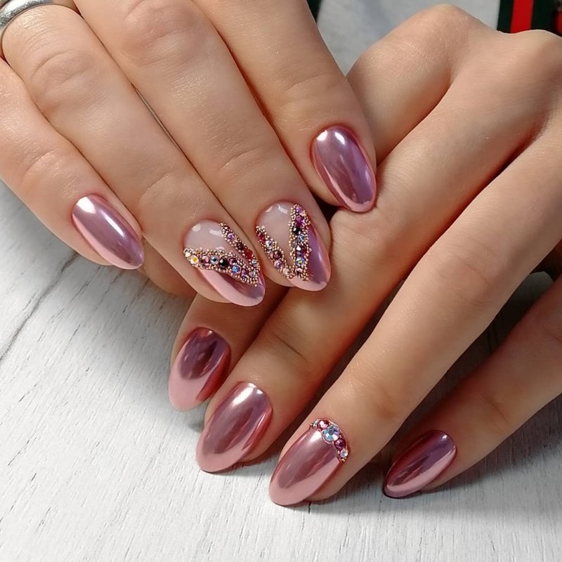 Совет: не забывайте о том, что украшения и маникюр должны быть в одном стиле. Они должны дополнять друг друга, а вместе не создавать эффекта чрезмерности. Массивные кольца с камнями будут смотреться безвкусно на фоне сверкающих зеркальных ноготков.